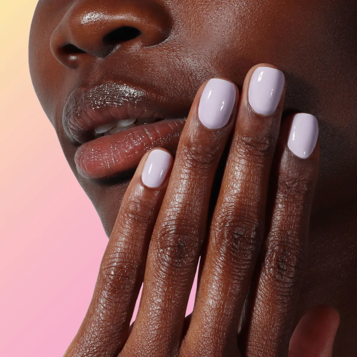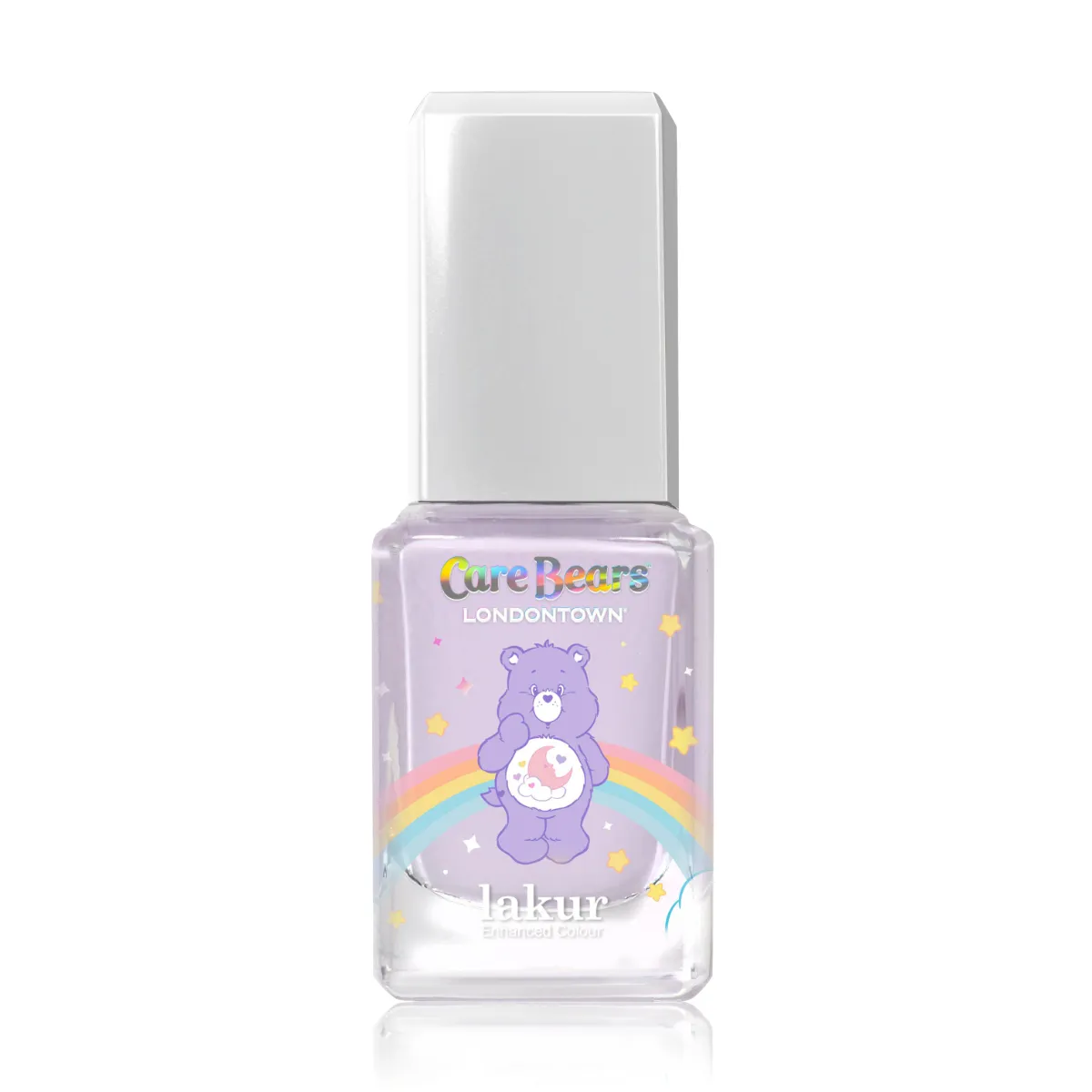 Vytvořte si manikúru pro dobrou náladu ve zklidňujícím, snovém, levandulovém odstínu podle medvídků Care Bears. Clean beauty.