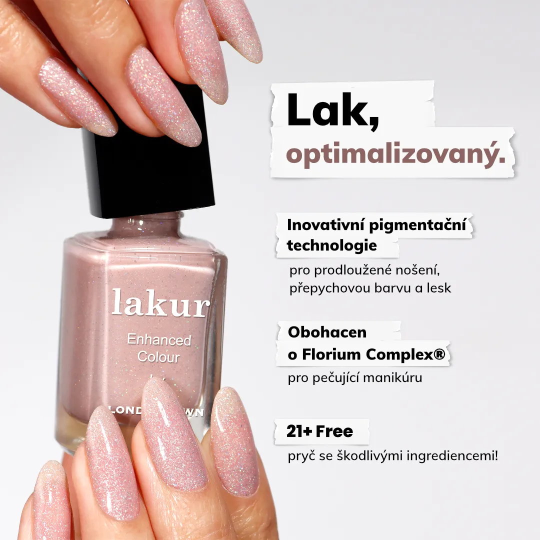 Luxusní laky na nehty Londontown lakur vyživují a zkrášlují současně, přitom jsou vysoce odolné, rychle zasychají a mají téměř gelový lesk. Obsahují Florium Complex®, dobře střežený rodinný recept - směs botanických olejů a extraktů pro posílení, hydrataci a regeneraci nehtů a pokožky. Laky na nehty lakur představují průlomovou kombinaci intenzivní barvy a jedinečné péče kur® – výsledek promyšleného přístupu, který spojuje to nejlepší z čistých ingrediencí a účinné, profesionální technologie. Vyberte si clean beauty.