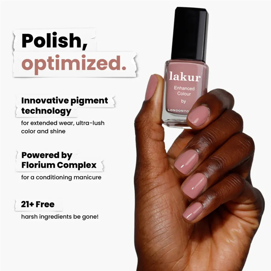 Luxusní laky na nehty Londontown lakur vyživují a zkrášlují současně, přitom jsou vysoce odolné, rychle zasychají a mají téměř gelový lesk. Obsahují Florium Complex®, dobře střežený rodinný recept - směs botanických olejů a extraktů pro posílení, hydrataci a regeneraci nehtů a pokožky. Laky na nehty lakur představují průlomovou kombinaci intenzivní barvy a jedinečné péče kur® – výsledek promyšleného přístupu, který spojuje to nejlepší z čistých ingrediencí a účinné, profesionální technologie. Vyberte si clean beauty.