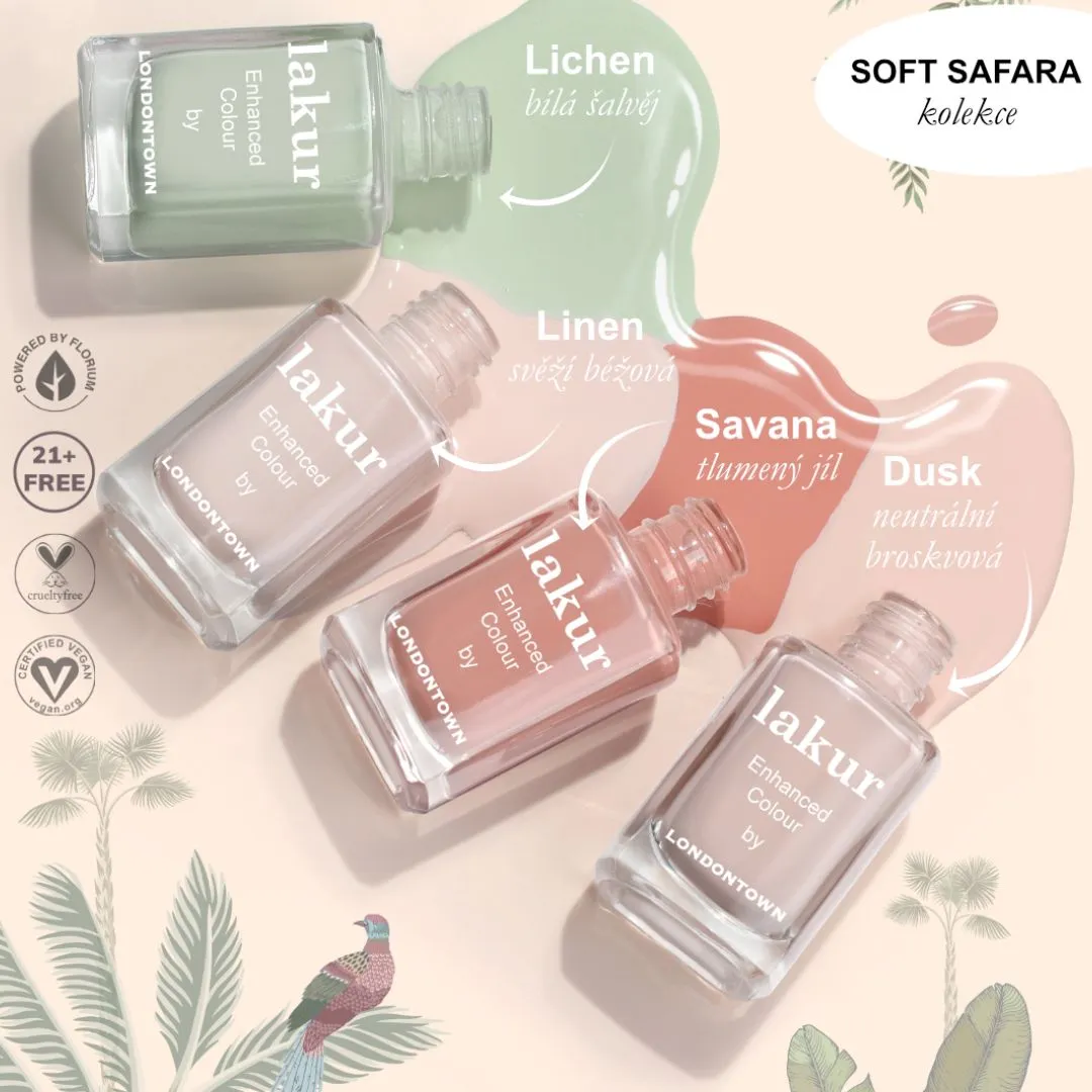 Luxusní laky na nehty Londontown lakur vyživují a zkrášlují současně, přitom jsou vysoce odolné, rychle zasychají a mají téměř gelový lesk. Obsahují Florium Complex®, dobře střežený rodinný recept - směs botanických olejů a extraktů pro posílení, hydrataci a regeneraci nehtů a pokožky. Laky na nehty lakur představují průlomovou kombinaci intenzivní barvy a jedinečné péče kur® – výsledek promyšleného přístupu, který spojuje to nejlepší z čistých ingrediencí a účinné, profesionální technologie. Vyberte si clean beauty.