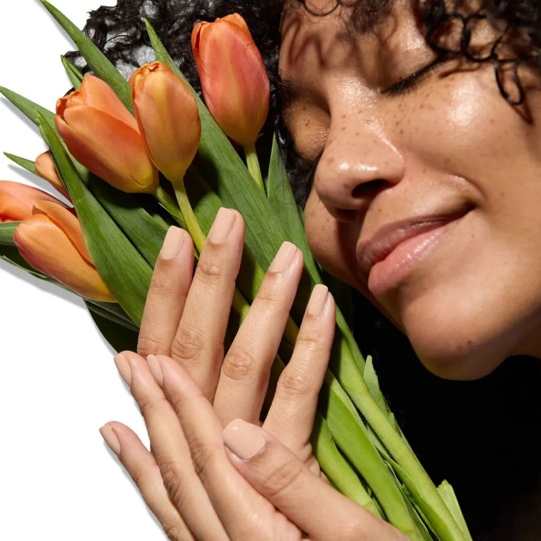Lak na nehty v jednoduchém odstínu neutrální broskve je inspirovaný jemností jara plného nových počátků. Navíc výživný a clean beauty.