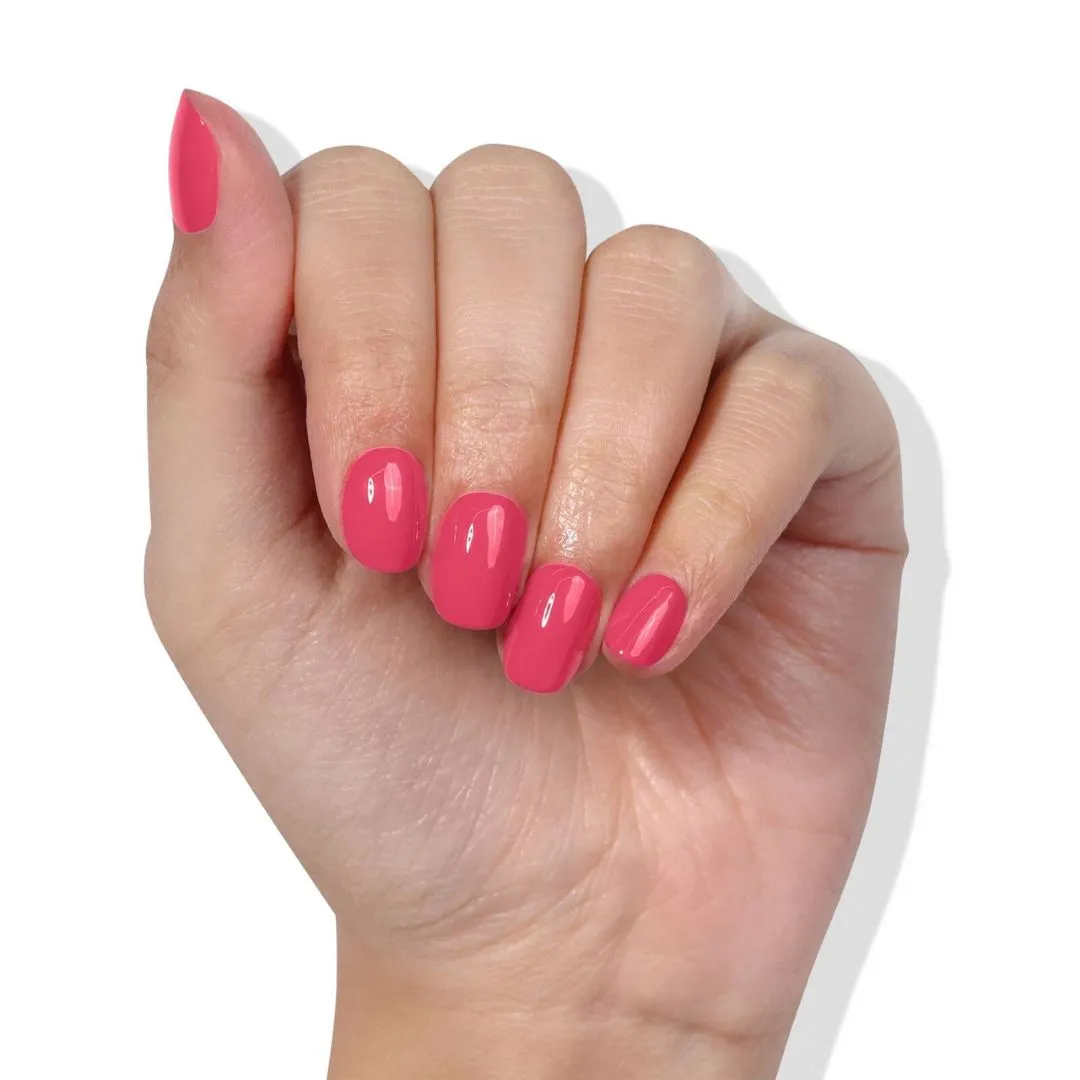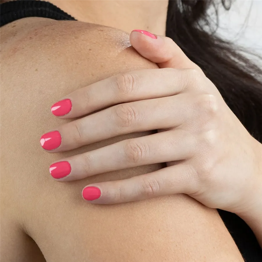 Výrazně růžový lak na nehty z kolekce Hotel California přináší půvab opalovačky u bazénu, slunečníků a košatých palem. Clean beauty.