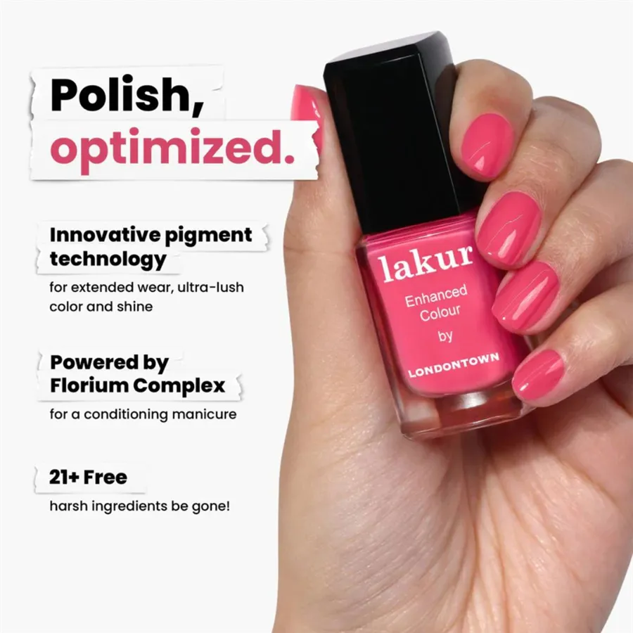 Luxusní laky na nehty Londontown lakur vyživují a zkrášlují současně, přitom jsou vysoce odolné, rychle zasychají a mají téměř gelový lesk. Obsahují Florium Complex®, dobře střežený rodinný recept - směs botanických olejů a extraktů pro posílení, hydrataci a regeneraci nehtů a pokožky. Laky na nehty lakur představují průlomovou kombinaci intenzivní barvy a jedinečné péče kur® – výsledek promyšleného přístupu, který spojuje to nejlepší z čistých ingrediencí a účinné, profesionální technologie. Vyberte si clean beauty.