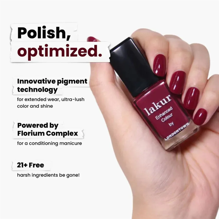 Luxusní laky na nehty Londontown lakur vyživují a zkrášlují současně, přitom jsou vysoce odolné, rychle zasychají a mají téměř gelový lesk. Obsahují Florium Complex®, dobře střežený rodinný recept - směs botanických olejů a extraktů pro posílení, hydrataci a regeneraci nehtů a pokožky. Laky na nehty lakur představují průlomovou kombinaci intenzivní barvy a jedinečné péče kur® – výsledek promyšleného přístupu, který spojuje to nejlepší z čistých ingrediencí a účinné, profesionální technologie. Vyberte si clean beauty.