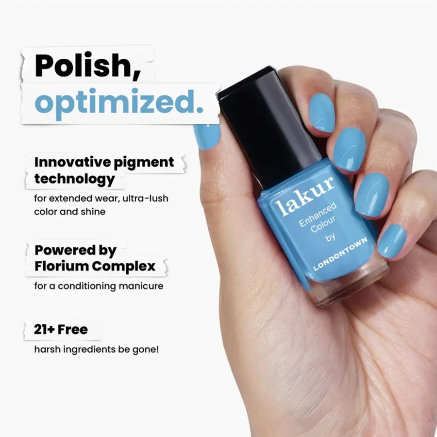 Luxusní laky na nehty Londontown lakur vyživují a zkrášlují současně, přitom jsou vysoce odolné, rychle zasychají a mají téměř gelový lesk. Obsahují Florium Complex®, dobře střežený rodinný recept - směs botanických olejů a extraktů pro posílení, hydrataci a regeneraci nehtů a pokožky. Laky na nehty lakur představují průlomovou kombinaci intenzivní barvy a jedinečné péče kur® – výsledek promyšleného přístupu, který spojuje to nejlepší z čistých ingrediencí a účinné, profesionální technologie. Vyberte si clean beauty.