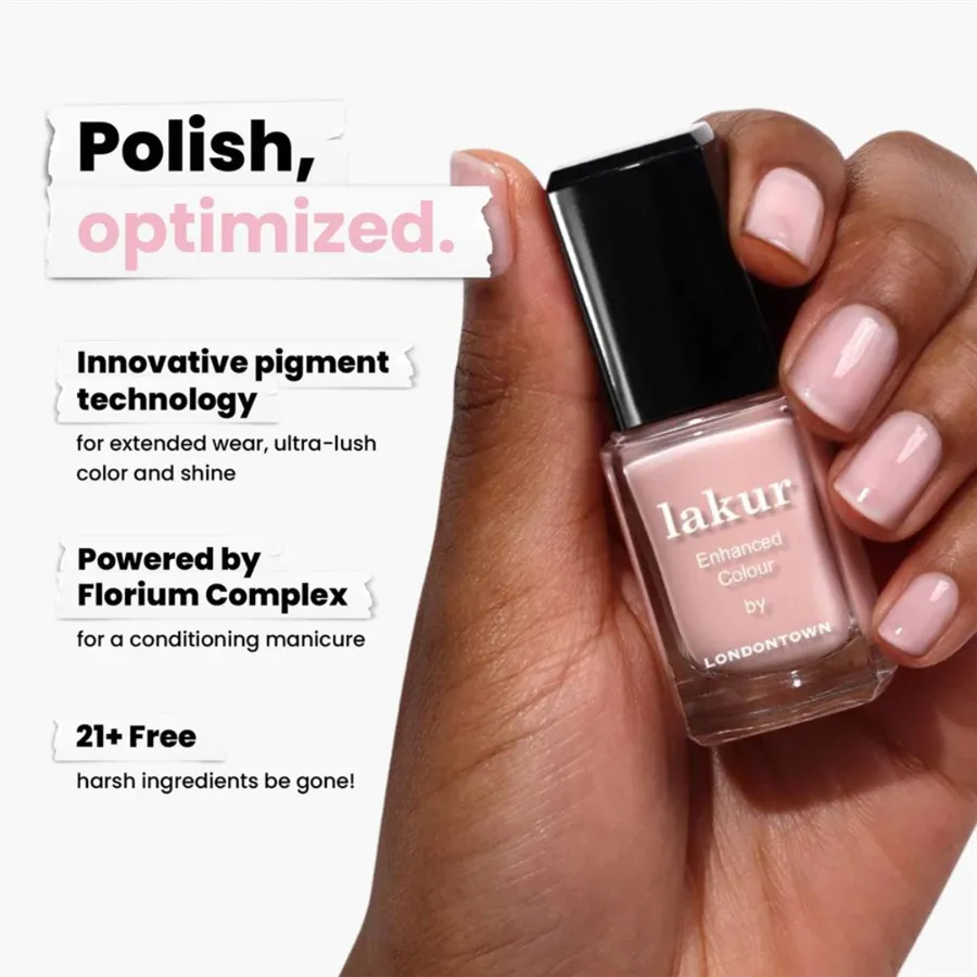 Luxusní laky na nehty Londontown lakur vyživují a zkrášlují současně, přitom jsou vysoce odolné, rychle zasychají a mají téměř gelový lesk. Obsahují Florium Complex®, dobře střežený rodinný recept - směs botanických olejů a extraktů pro posílení, hydrataci a regeneraci nehtů a pokožky. Laky na nehty lakur představují průlomovou kombinaci intenzivní barvy a jedinečné péče kur® – výsledek promyšleného přístupu, který spojuje to nejlepší z čistých ingrediencí a účinné, profesionální technologie. Vyberte si clean beauty.