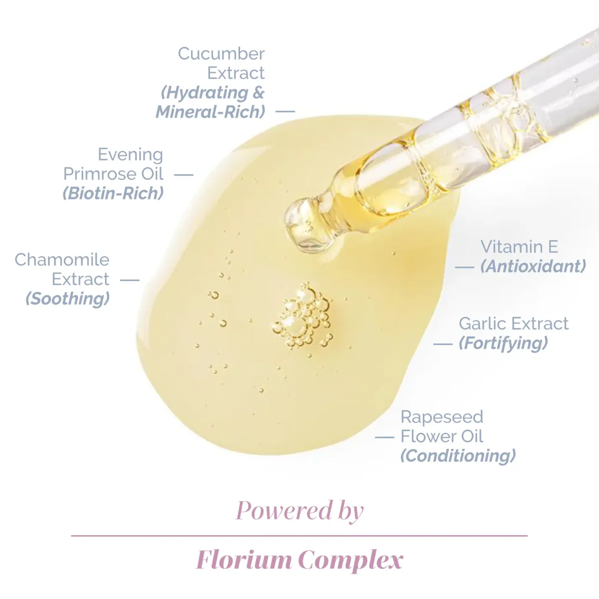 - obsahujte výživný botanický Florium Complex® pro pevné a zdravé nehty (obsahuje pupalkový a řepkový olej, extrakty z okurky, česneku a heřmánku, vitamín E)