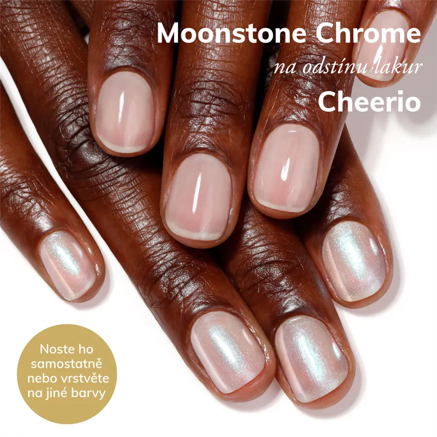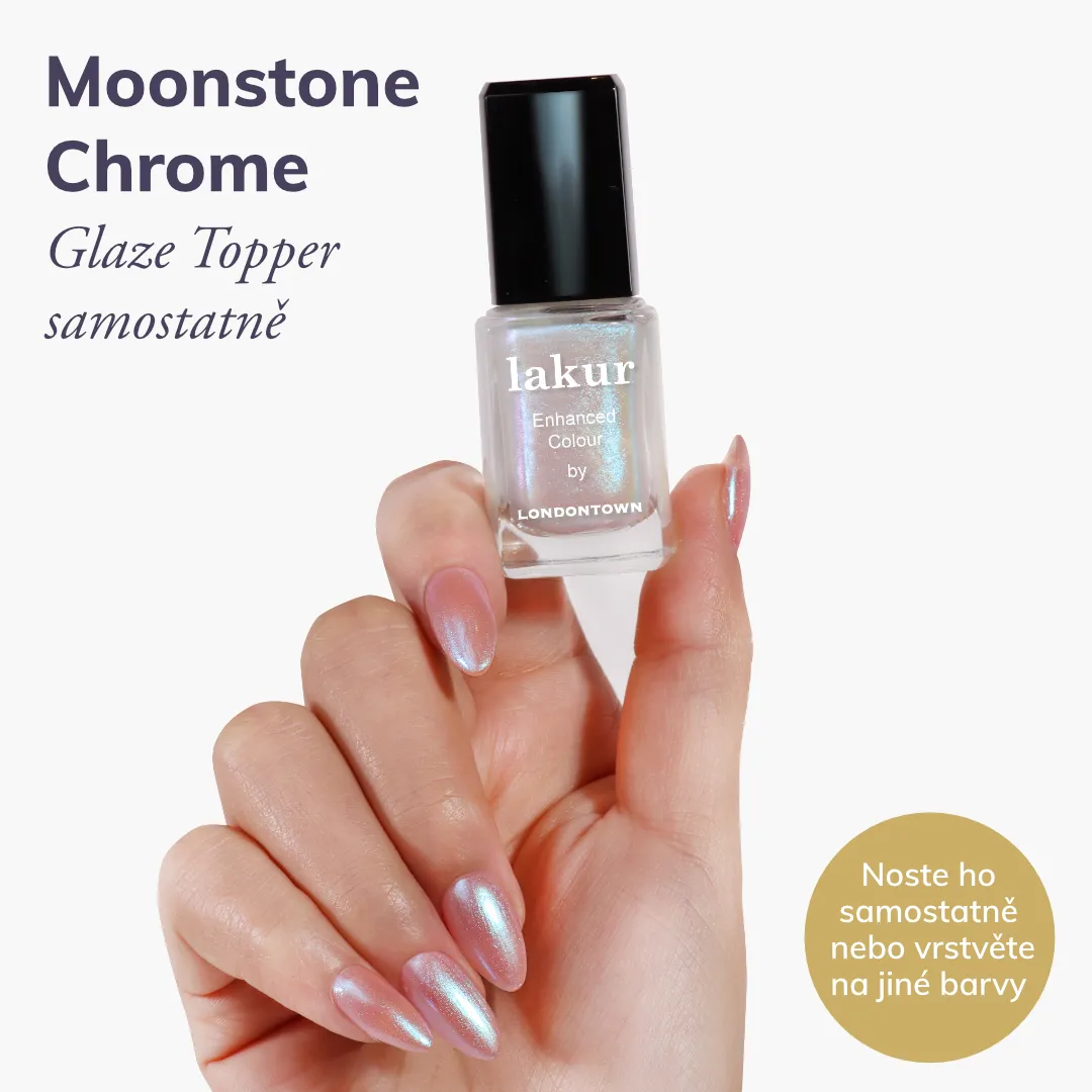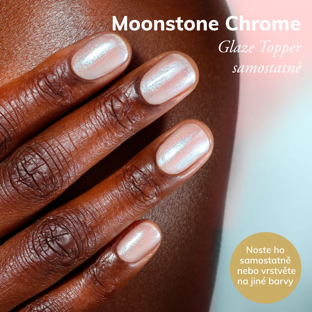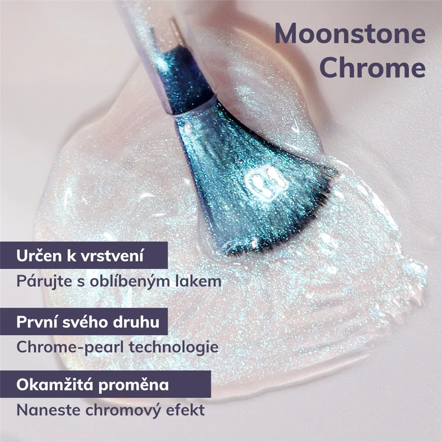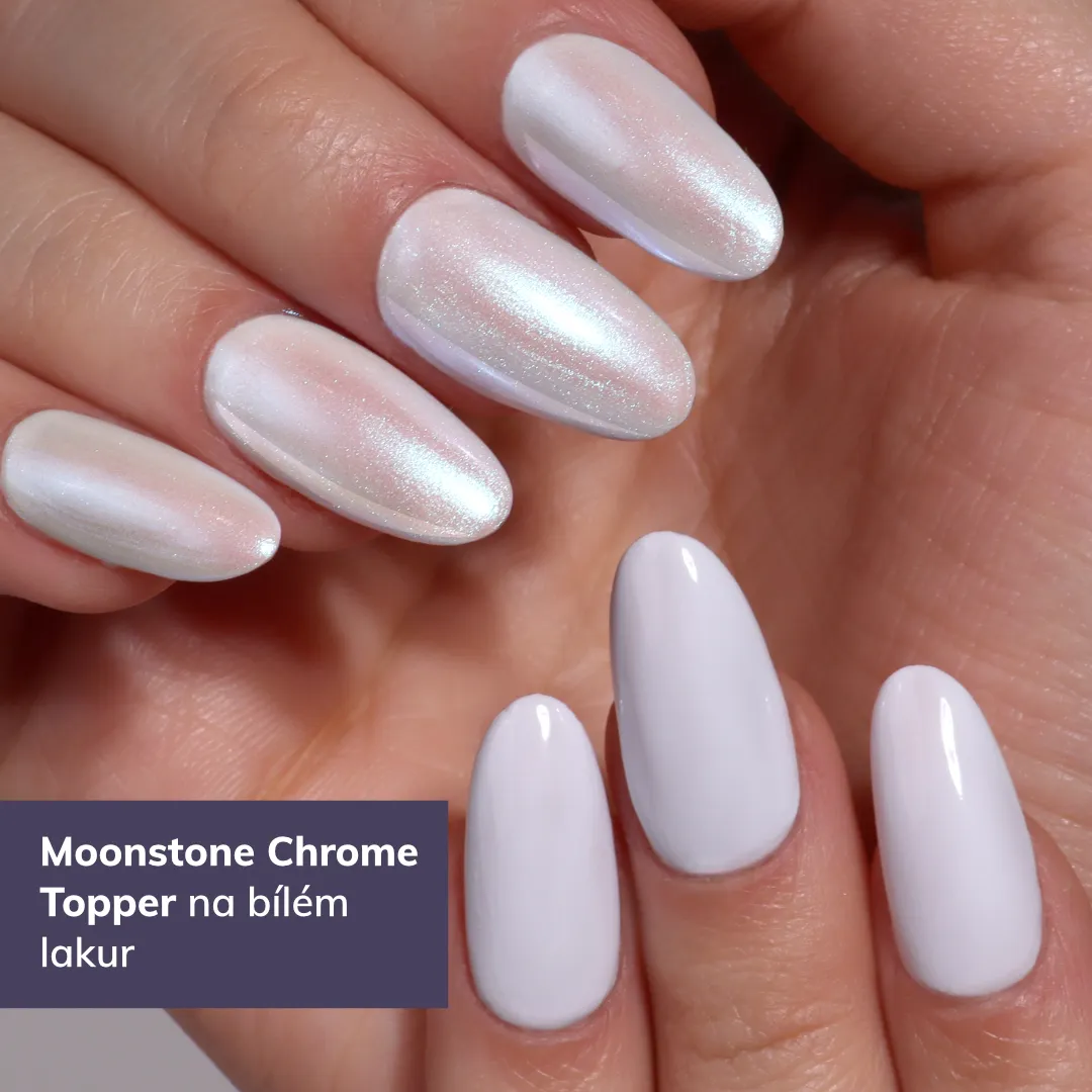 Topper s chromově perlovou technologií okamžitě dodá vašemu laku i holým nehtům cool kovový lesk. Moonstone má chladný lesk s ledově zeleným nádechem.