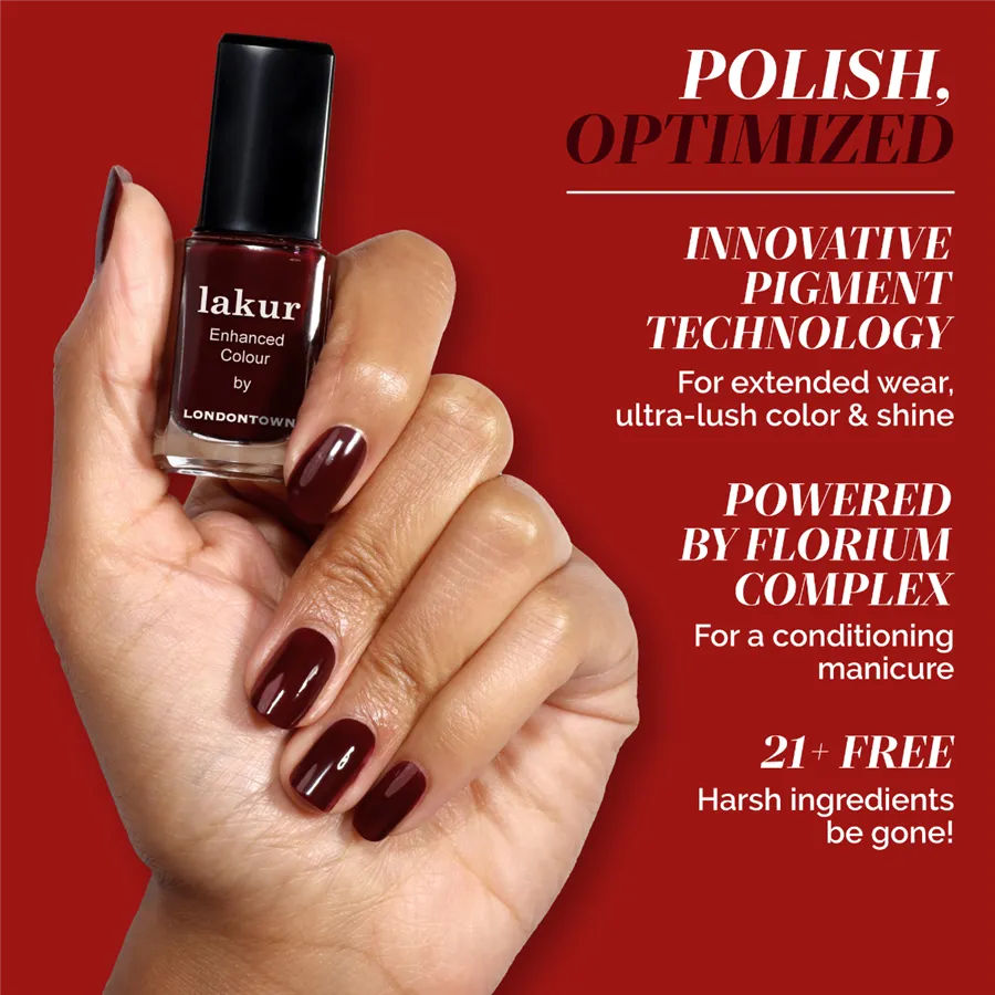 Luxusní laky na nehty Londontown lakur vyživují a zkrášlují současně, přitom jsou vysoce odolné, rychle zasychají a mají téměř gelový lesk. Obsahují Florium Complex®, dobře střežený rodinný recept - směs botanických olejů a extraktů pro posílení, hydrataci a regeneraci nehtů a pokožky. Laky na nehty lakur představují průlomovou kombinaci intenzivní barvy a jedinečné péče kur® – výsledek promyšleného přístupu, který spojuje to nejlepší z čistých ingrediencí a účinné, profesionální technologie. Vyberte si clean beauty.