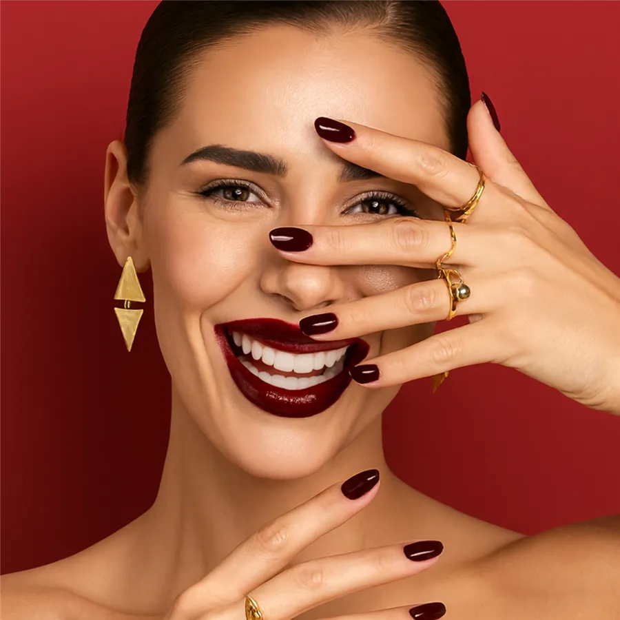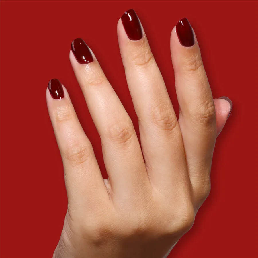 Lak na nehty v odstínu plného vína Merlot přinese vaší manikúře okázalost a kouzlo. Clean beauty.