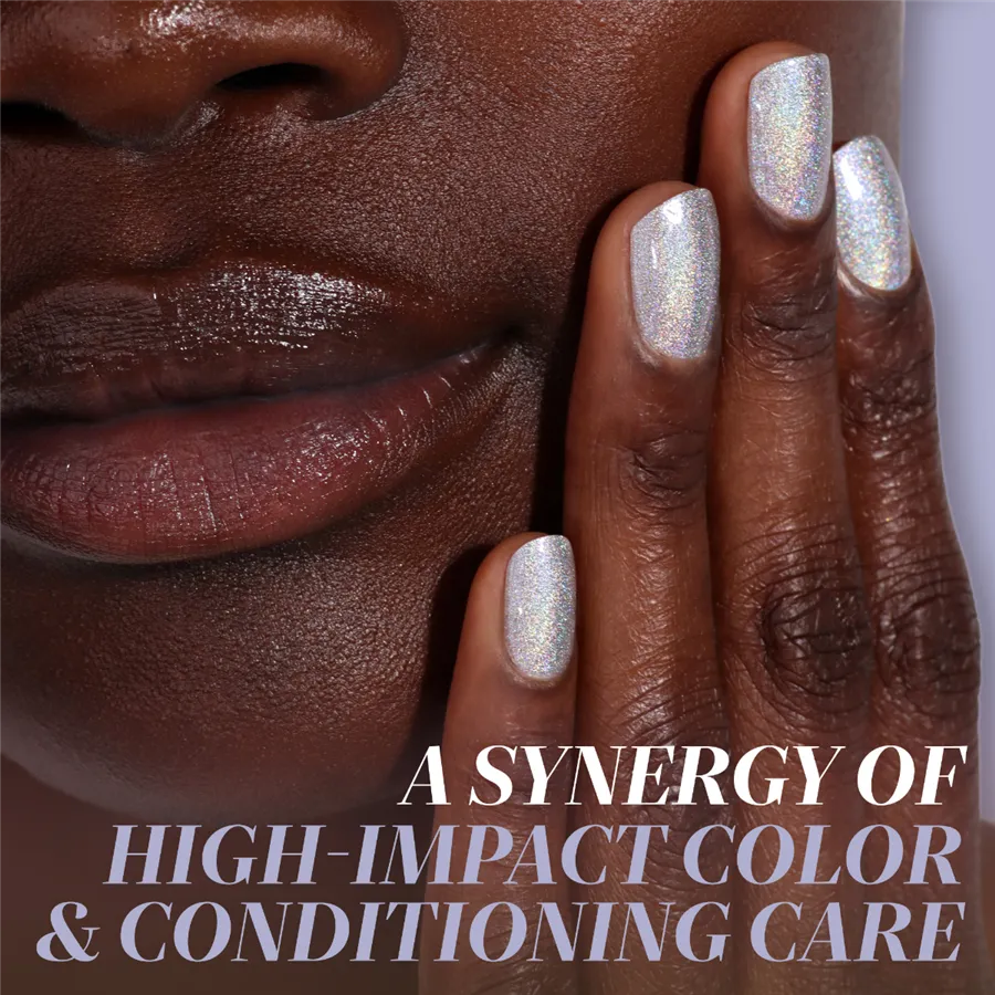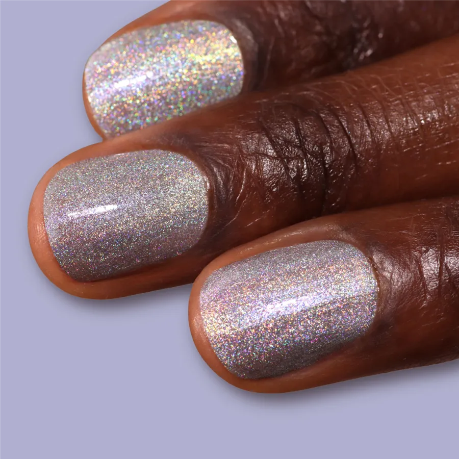 Lak na nehty s platinovými holografickými třpytkami přinese vaší manikúře okázalost a kouzlo. Clean beauty.