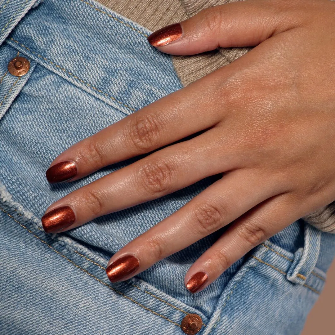 Lak na nehty v odstínu skořicové metalízy. Kolekce Nice & Spiced je inspirována moderním pojetím podzimu. Clean beauty.