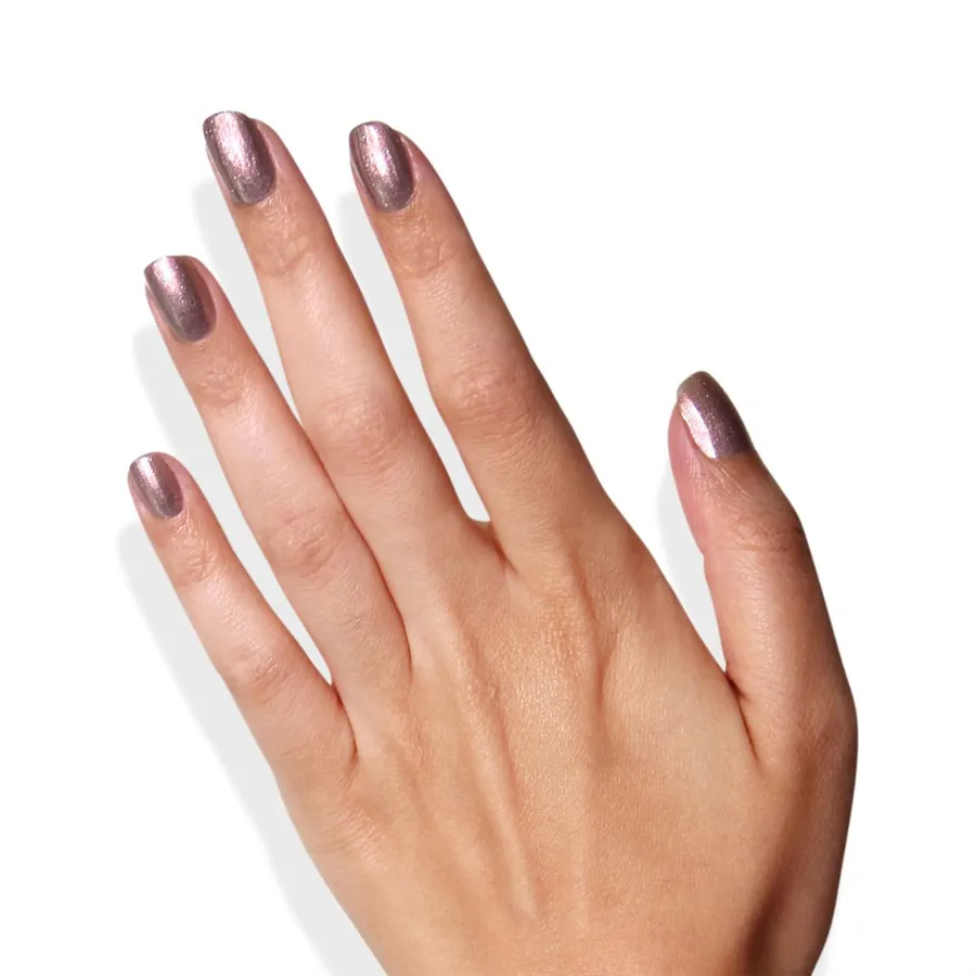 Odvážná růžovozlatá barva je dovedená k dokonalosti. Při tanci hází stříbrné odlesky. Navíc vyživuje nehty, je veganský a 21+FREE.