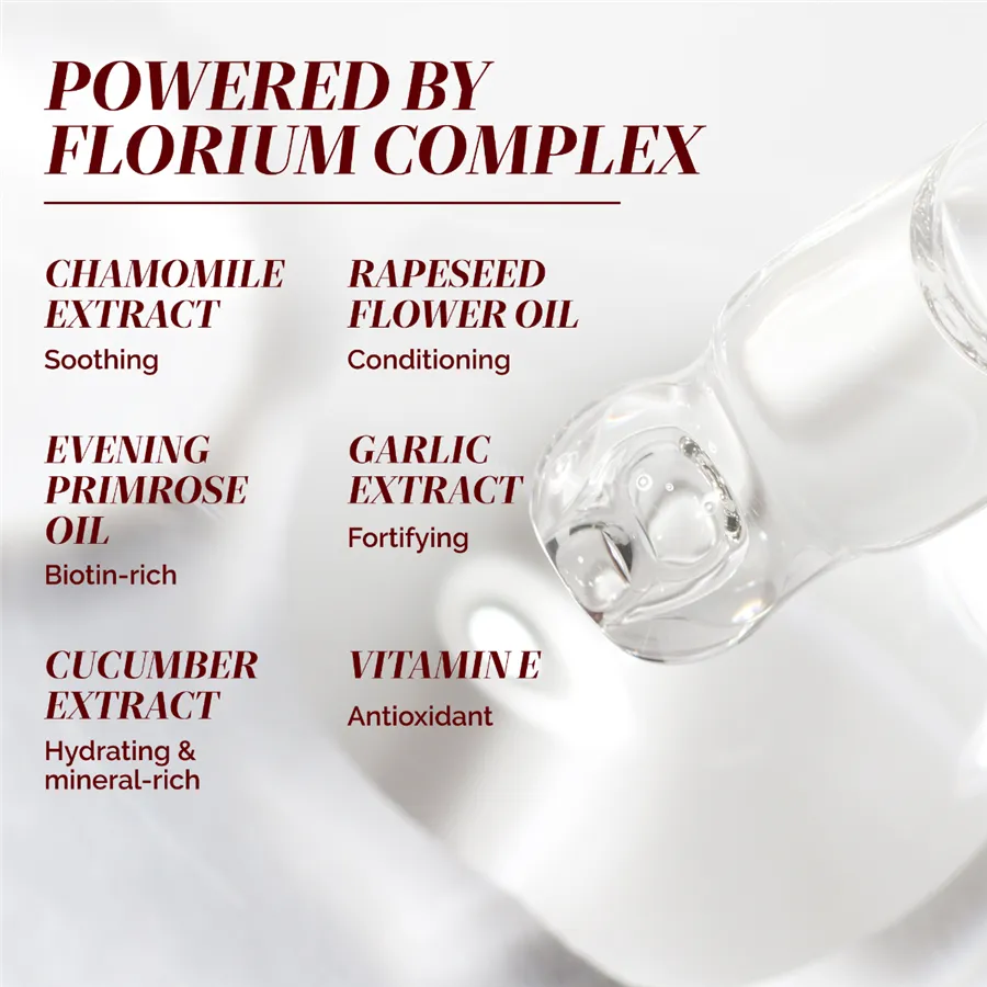 - obsahujte výživný botanický Florium Complex® pro pevné a zdravé nehty (obsahuje pupalkový a řepkový olej, extrakty z okurky, česneku a heřmánku, vitamín E)