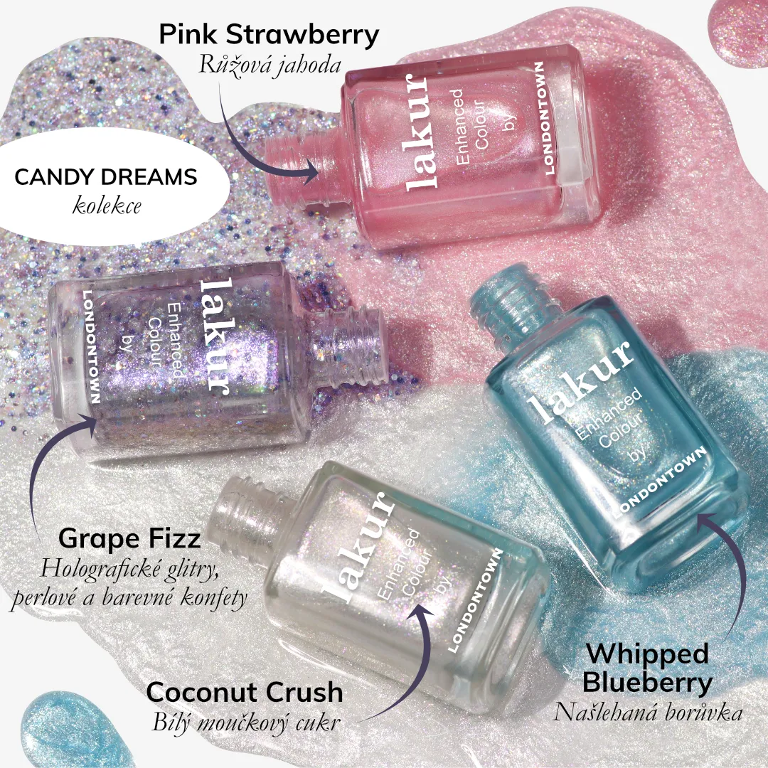 Lak na nehty v odstínu modré borůvky s jemnými třpytkami. Kolekce Candy Dreams přináší dokonalost pastelových barev v cukrové polevě. Clean beauty.
