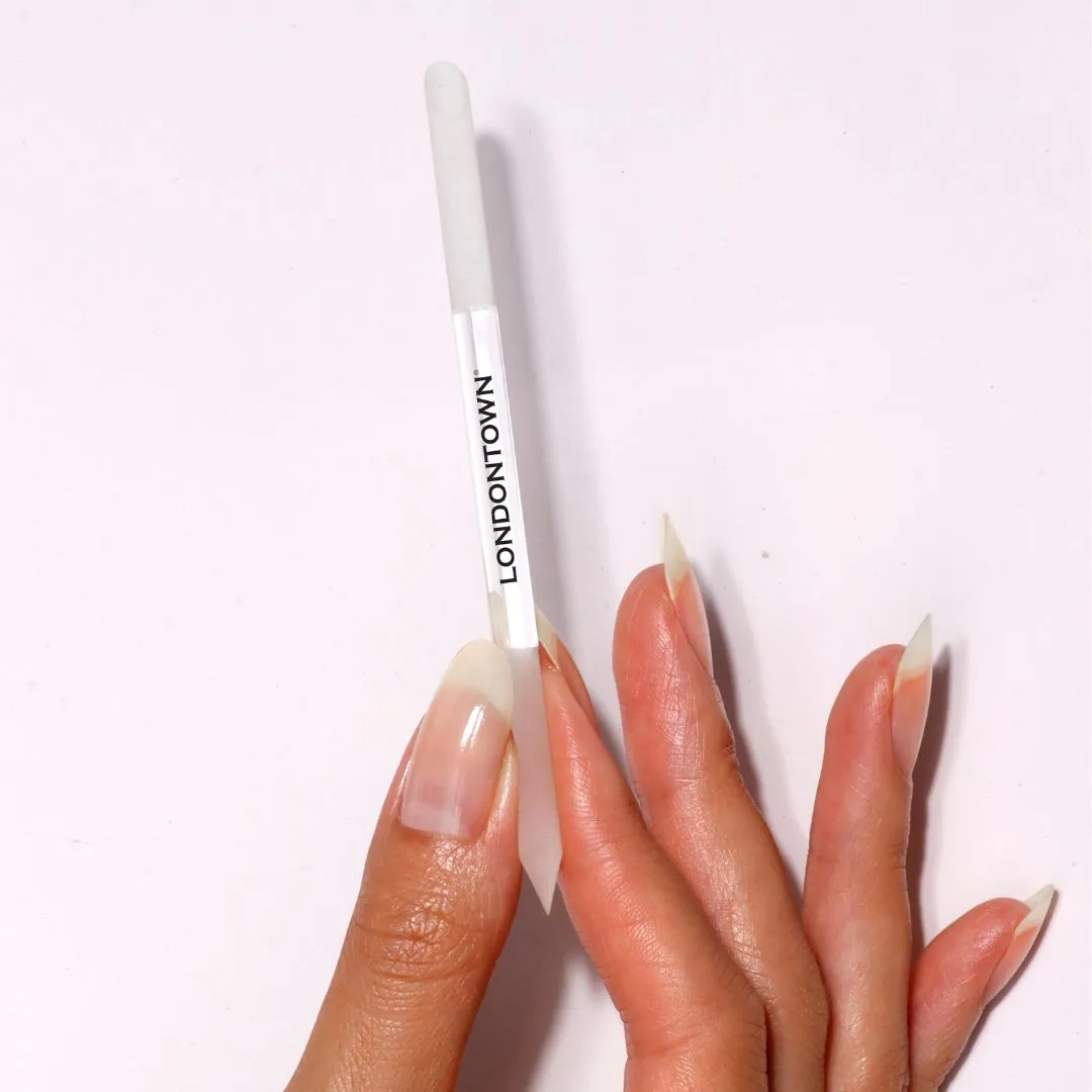 - Opláchněte ruce teplou vodou s mýdlem, poté naneste svůj oblíbený Londontown cuticle oil a pokračujte dalšími kroky manikúry.