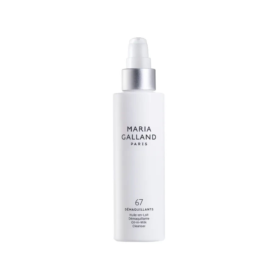 Pečující pleťový odličovač oil-in-milk 67 (Oil-in-Milk Sublime Cleanser Maria Galland) intenzivně pečuje o pleť. Jemně odstraňuje všechny typy make-upu. Nezanechává mastný film. Pleť je po něm hebká, revitalizovaná a přirozeně krásná. Jeho olejová textura se na pleti mění v mléčnou.