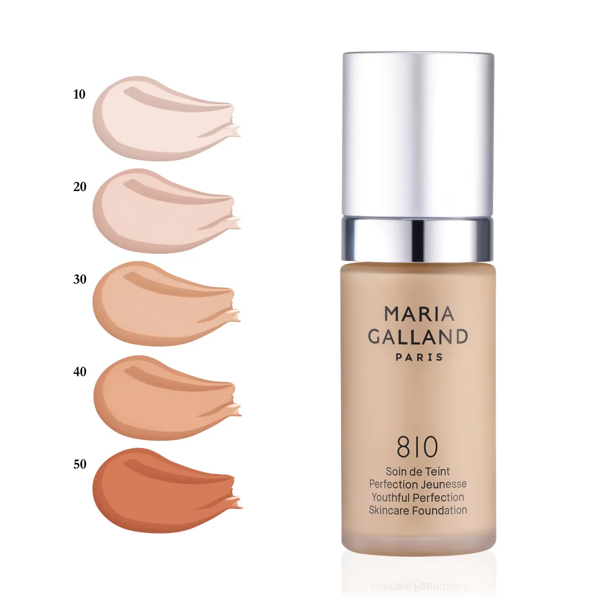 Omlazující a pečující Make-up 810/10 Maria Galland v sobě kombinuje okamžitý i dlouhodobý zkrášlující efekt. Projasní pleť, harmonizuje její odstín, působí proti stárnutí a zároveň pečuje o pleť. Jemné pigmenty zajišťují saténový finiš a zářivý vzhled. Je vhodný pro ženy se zralou pletí, které hledají omlazující benefity, ideálně tak doplňuje řady Lift'ExpertActiv'Age a Mille.