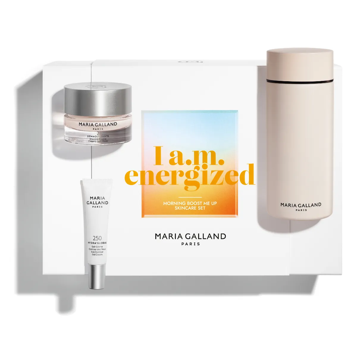 Koupí setu ušetříte 1390 Kč a zároveň získáte dárek.Každé ráno je novým začátkem – chvílí pro reset a načerpání energie. Dárkový set I a.m. Energized probouzí pleť, dodává jí energii a zářivý vzhled a nabízí moment péče o sebe, který vás povzbudí pro celý den. Set obohatí vaše ráno o velkou dávku energie. Díky ikonické čisticí masce jemně odstraňuje nečistoty a rozjasňuje pleť. Oční gel, hydratuje a povzbudí oční okolí. Set je doplněný praktickým termohrnkem, který vám pomůže dodržovat pitný režim.