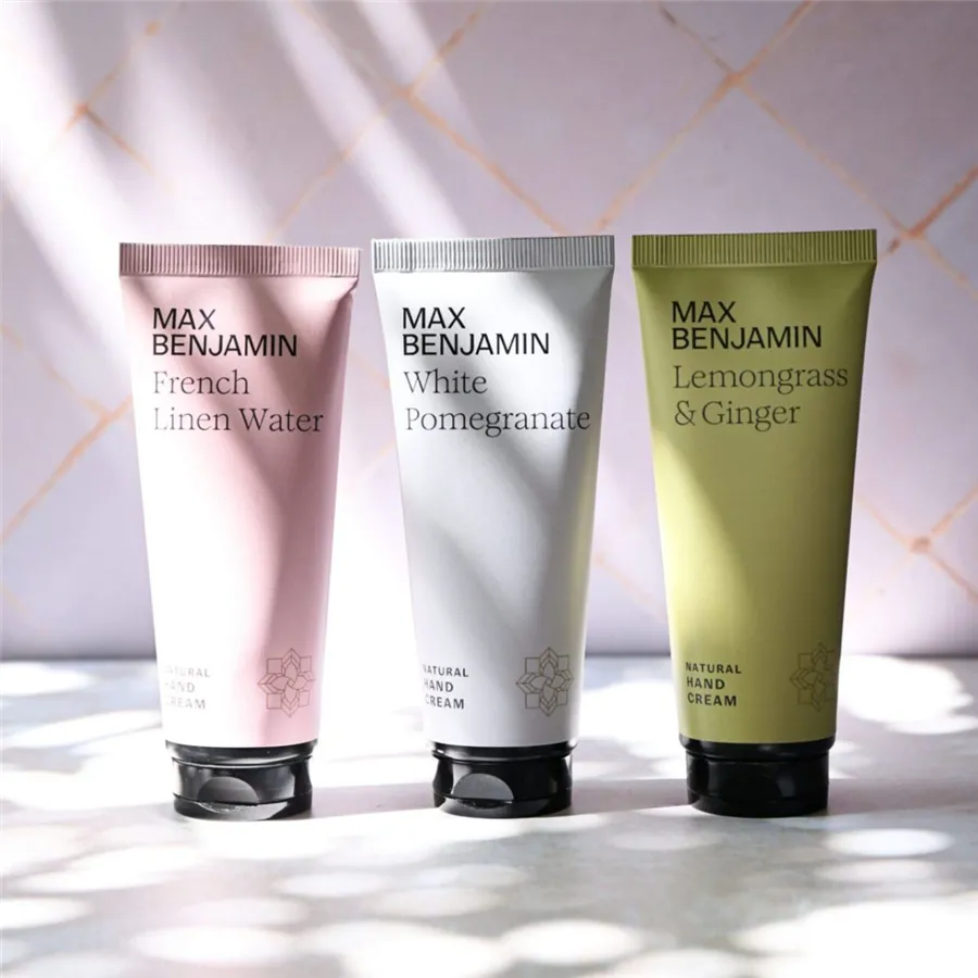 Vyzkoušejte neodolatelně příjemné přírodní krémy na ruce irské značky Max Benjamin. Obsahují olivový olej s antioxidačními účinky. Dále hydratační olej ze sladkých mandlí a zjemňující a vyhlazující olej Olus, což je směs triglyceridů mastných kyselin získaných z rostlinných olejů jako je kokosový, sójový nebo slunečnicový. Je lehký a šetrný k citlivé pokožce.