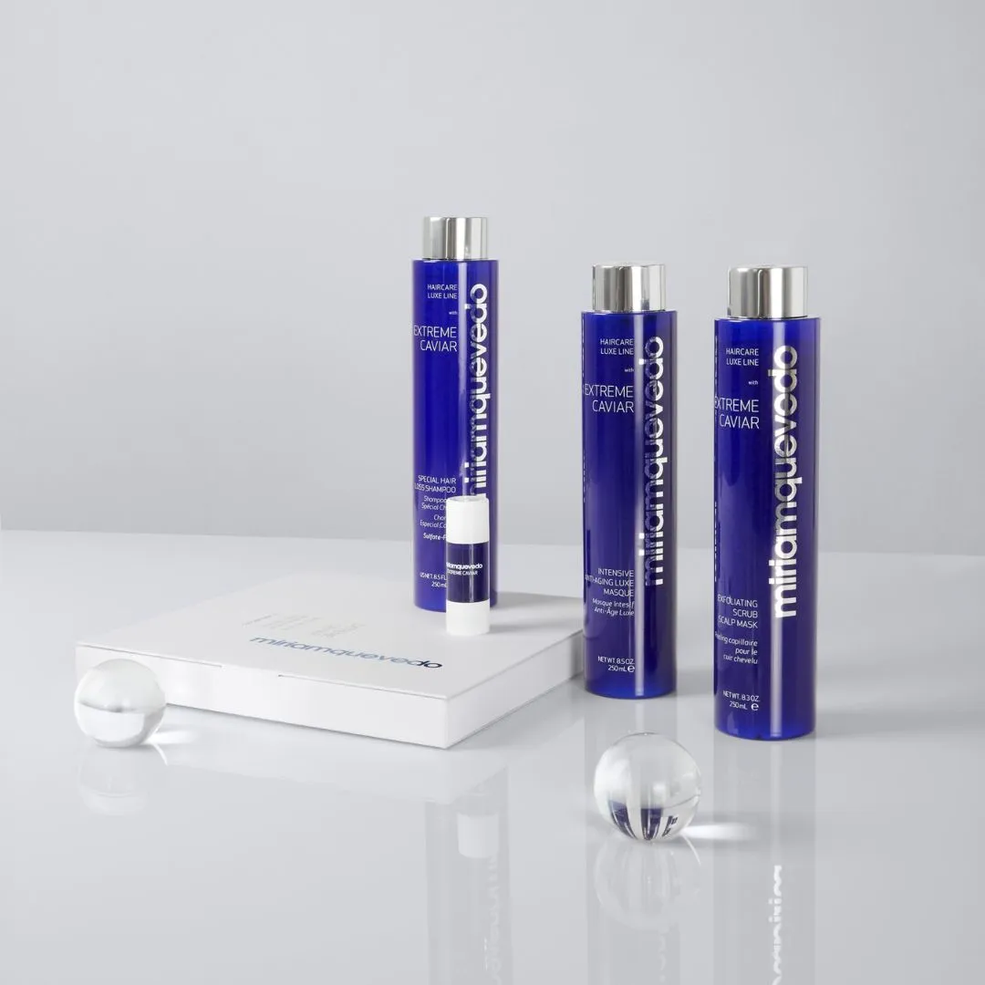 Extreme Caviar Special Hair Loss Shampoo je intenzivní péče určená k boji proti vypadávání vlasů a ke stimulaci jejich růstu. Využívá pokročilé biotechnologie a luxusní ingredience k posílení vlasových folikulů, zlepšení mikrocirkulace pokožky hlavy a ochraně vlasového vlákna před stárnutím a poškozením. Obohacen o 8 multivitamínů a 5 stopových prvků, pomáhá inhibovat tvorbu DHT - hlavní příčinu vypadávání vlasů. Zároveň reguluje činnost mazových žláz a poskytuje antiseptické účinky, které bojují proti infekcím bránícím zdravému růstu vlasů. Účinnost svých produktů kontroluje Miriam Quevedo ve svých laboratořích.