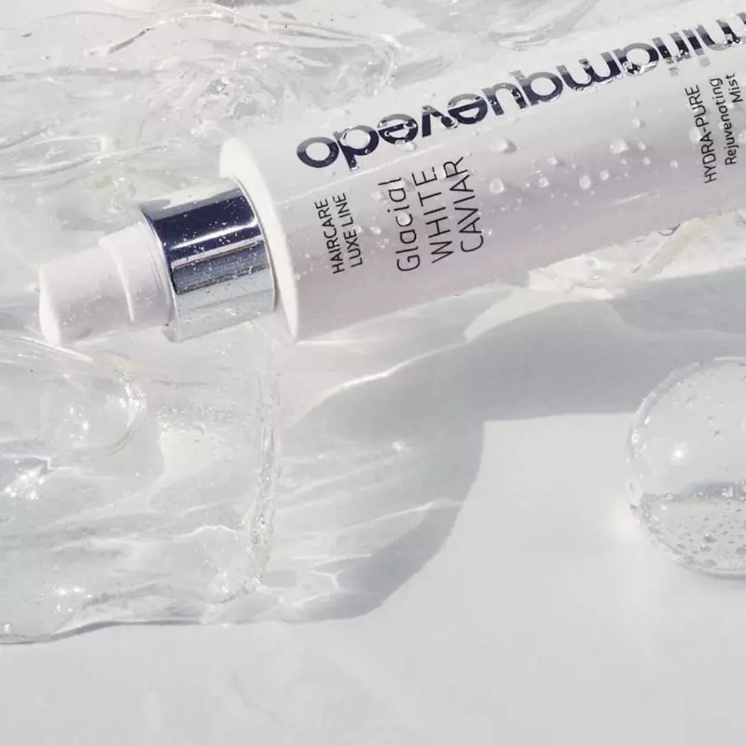 Glacial White Caviar Hydra‑Pure Rejuvenating Mist je výživná anti‑aging mlha s extraktem z bílého kaviáru. Díky komplexu proteinů a strukturálních peptidů, které se okamžitě vstřebávají do vlasů a pokožky hlavy, chrání a bojuje proti škodlivým účinkům UV záření, chemických úprav, barvení či stylingu horkými přístroji. Vaše vlasy budou jemné a plné života díky 24hodinovému hydratačnímu efektu. Zklidňuje pokožku hlavy a obnovuje její přirozený ekosystém, obnovuje rovnováhu mikroflory a bojuje proti diskomfortu jako je suchost, olupování, svědění a podráždění. Má antibakteriální a protizánětlivé účinky.