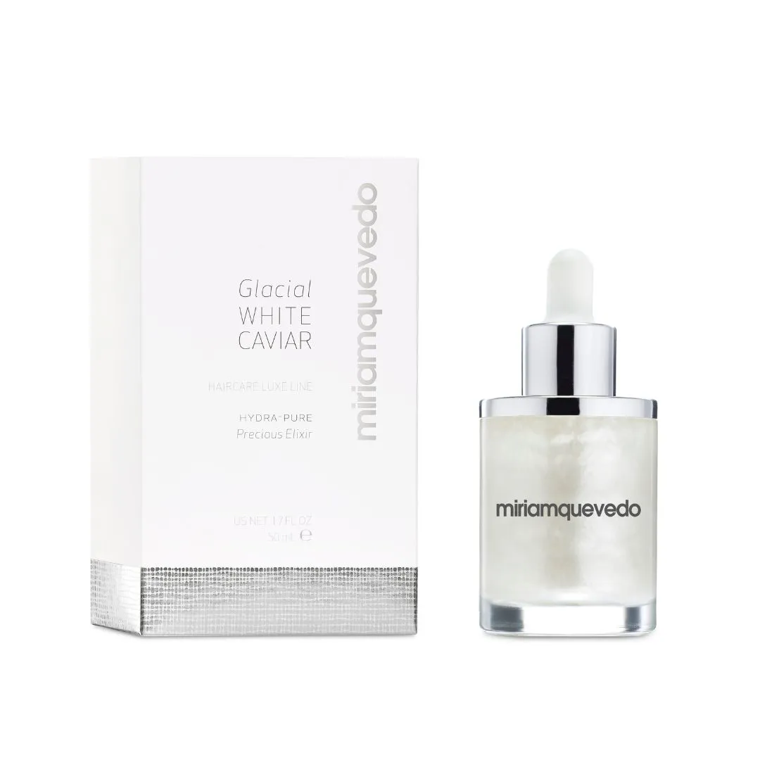 Glacial White Caviar Hydra-Pure Precious Elixir je jedinečné bezoplachové vlasové sérum pro ultimátní lesk! Přináší intenzivní ochranu, efektivní nápravu a hedvábnou texturu díky vzácným ingrediencím. Působí jako štít proti environmentálním stresům, zatímco dodává vlasům hlubokou výživu, hedvábnou jemnost a mladistvý lesk. Vzácné drahokamy odráží své světlo a přináší tak brilantní lesk. Vaše vlasy budou hedvábné a bez krepatění. Chrání před volnými radikály a tepelným poškozením.