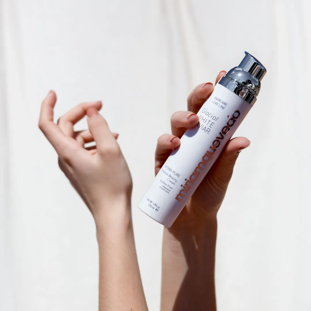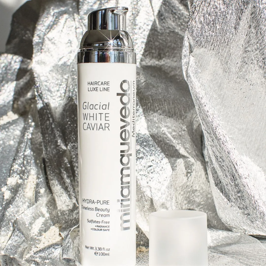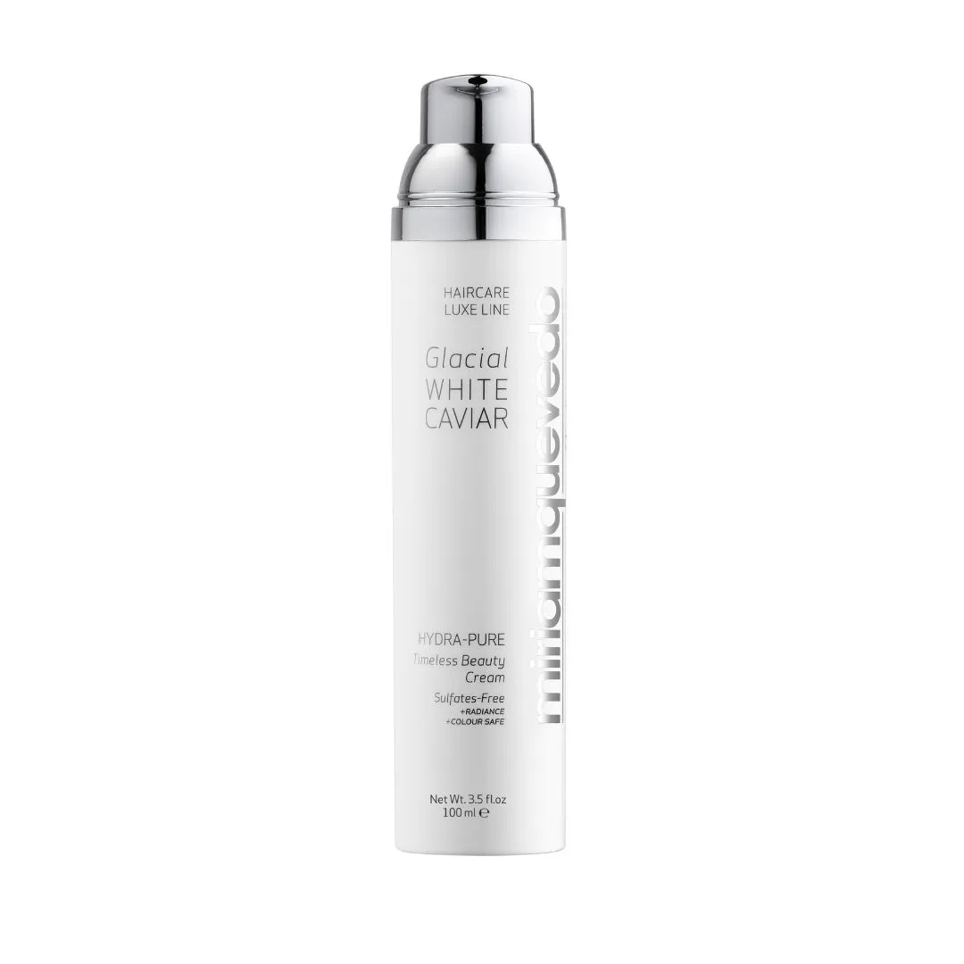 Hydra-Pure Timeless Beauty Cream z řady Glacial White Caviar je víceúčelový stylingový krém s extraktem z bílého kaviáru, kapslovanou ledovcovou vodou a systémem keratinové ochrany a přestavby. Funguje jako vysoce účinné vlasové sérum v krémové textuře. Hloubkově napravuje, hydratuje a transformuje poškozené vlasy. Chrání před blednutím barvy a dehydratací způsobenou horkem, fotostárnutím nebo chemikáliemi. Vzácné drahokamy odráží své světlo a přináší tak brilantní lesk. Vaše vlasy budou hedvábné a bez krepatění.
