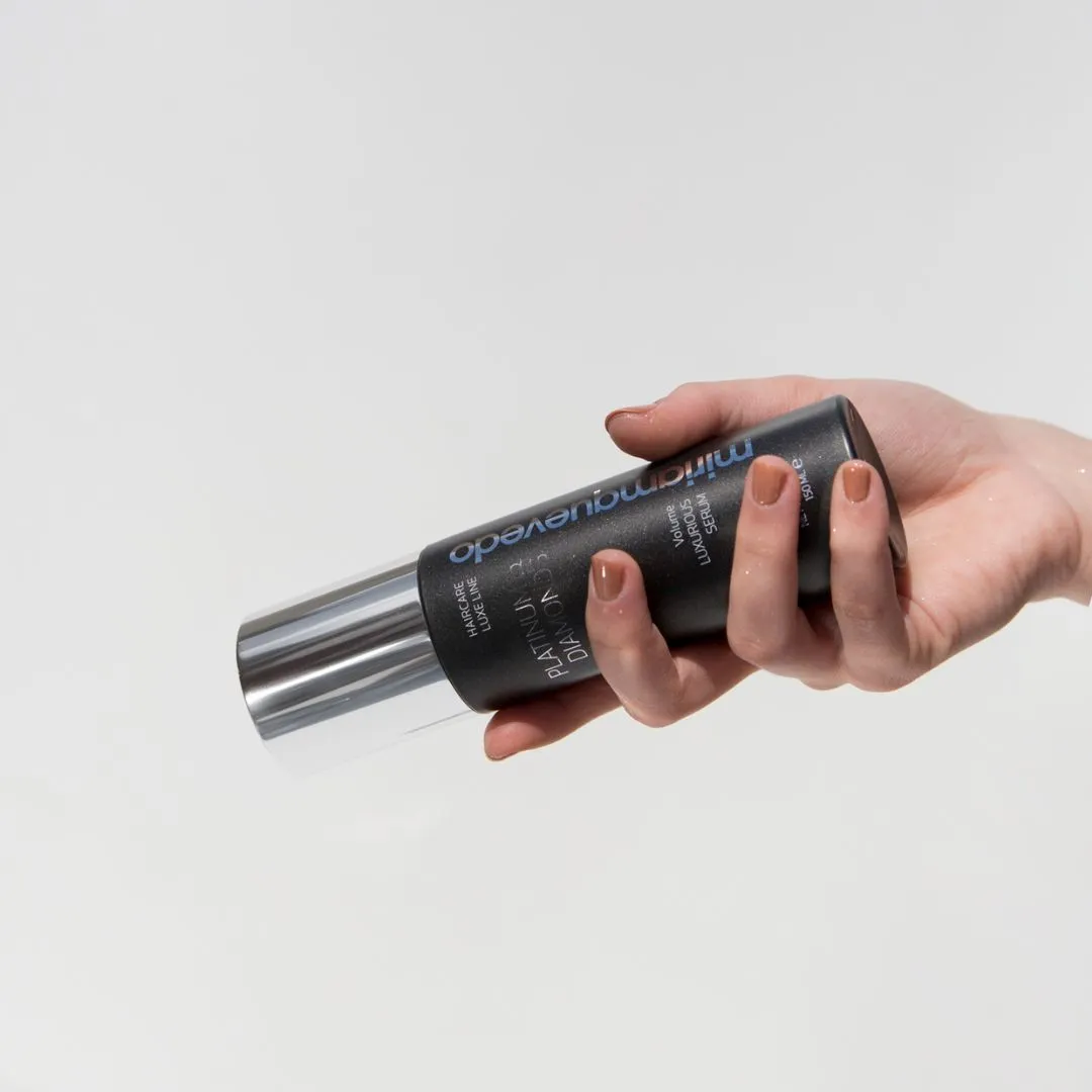 Platinum & Diamonds Volume Serum od Miriam Quevedo je luxusní anti-aging vlasové sérum, které přináší vlasům ultra dramatický objem a hedvábnou hebkost. Posiluje, chrání a dodává dlouhotrvající diamantový lesk. Vysoce účinné bezoplachové sérum kombinuje pokročilé vědecké technologie s výběrem prémiových ingrediencí pro okamžité i dlouhodobé výsledky. Je nabité 23 vzácnými aktivními látkami, které obnovují objem zevnitř i zvenčí vlasového vlákna a zároveň poskytují intenzivní anti-aging účinek. Systém keratinové ochrany a obnovy se váže na vlas, vytváří ochranné těsnění, které zadržuje hydrataci a chrání před teplem – působí proti mechanickému i chemickému poškození. Usnadňuje rozčesávání, zabraňuje lámání vlasů a zanechává je lépe ovladatelné, zdravější a ultra lehké. Vlasy jsou hedvábné, jemné a září výjimečným objemem a diamantovým leskem.