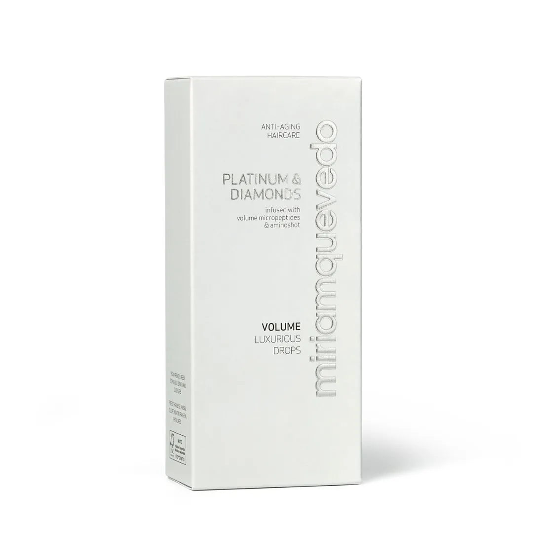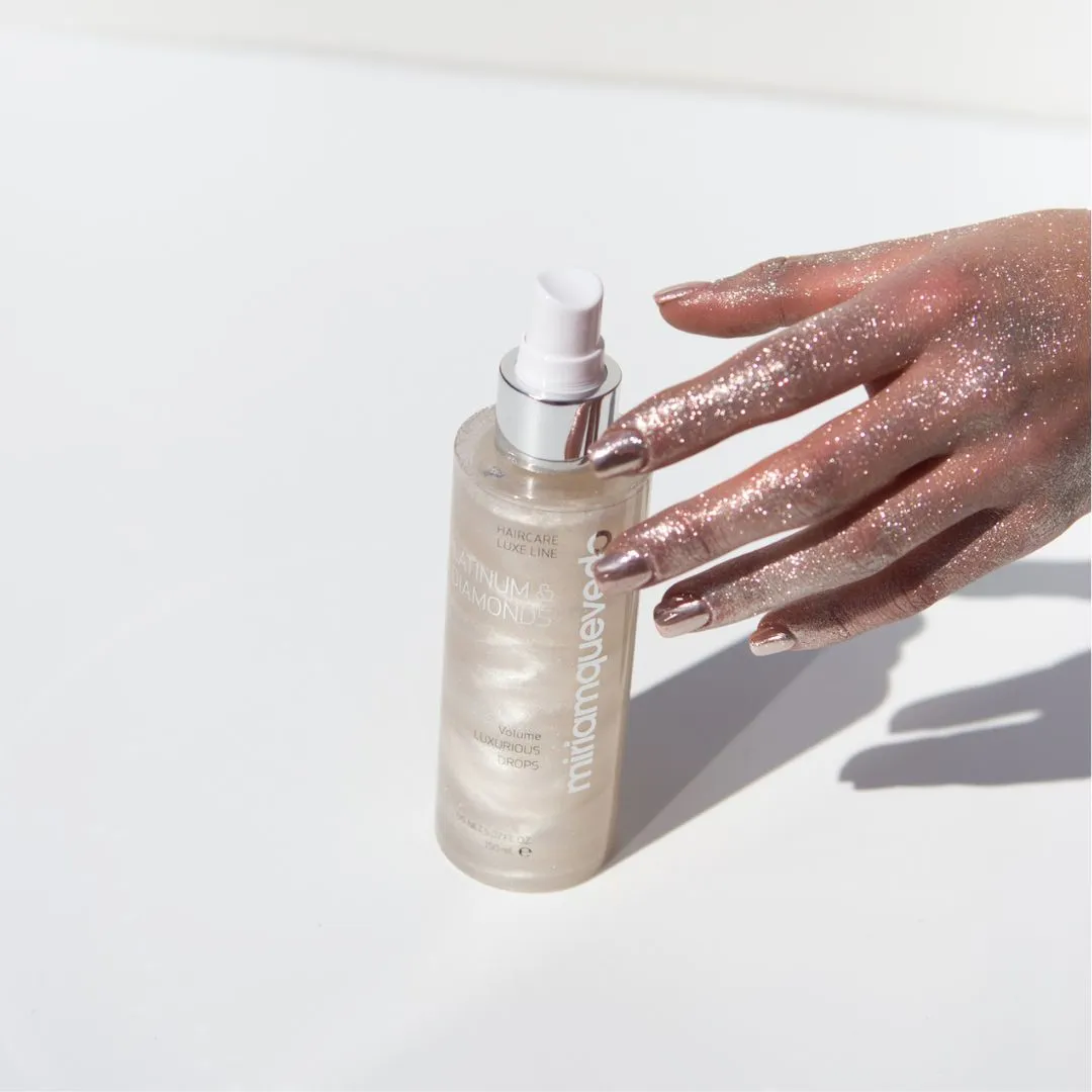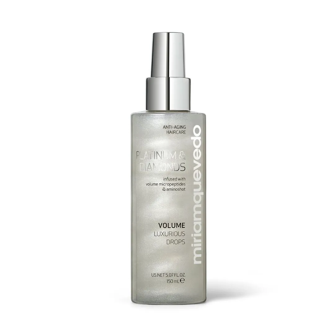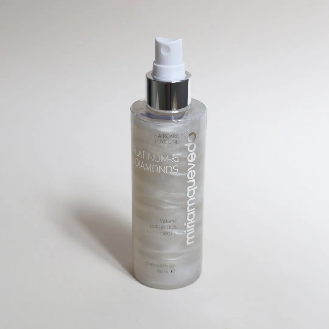 Platinum & Diamonds Volume Luxurious Drops je luxusní závěrečný objemový sprej přináší jemným vlasům ultra objem a extrémně hedvábný pocit. Zvětšuje tloušťku a průměr každého vlasového vlákna. Vyrovnává a podporuje správné elektrostatické náboje vlasů. Je nabitý 10 vzácnými aktivními složkami. Poskytuje dlouhotrvající ochranu barvy před UV zářením, zajišťuje nepřetržitou hydrataci, obnovuje elasticitu a přirozený lesk vlasů. Mlha bojuje proti stárnutí vlasů, hydratuje a revitalizuje vaši hřívu. Vlasy získávají platinové odlesky, diamantový lesk a elegantní vůni.