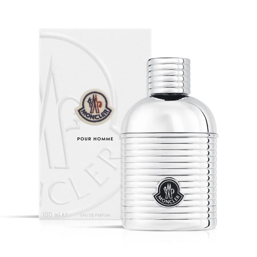 Flakon v rovných liniích má odvážný stříbrný efekt a jemně zakřivený design ve tvaru "borraccia". Je obklopen žebrovaným stříbrným pouzdrem a uzávěrem. Flakon je zabalen v prémiové matné krabičce s ikonickým logem Moncler a charakteristickou nášivkou "feltrino", která připomíná nášivku na péřových bundách Moncler.