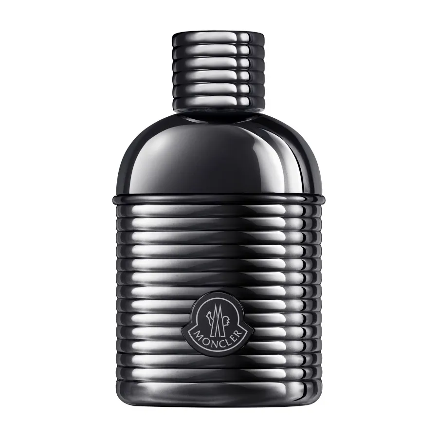 Flakon byl inspirován horami za úsvitu, kde tento nový příběh vůně využívá zářivou metaliku. Uvnitř v novém nadčasovém pistolovém kovu Moncler Sunrise pour Homme ztělesňuje esenci mužnosti, sebevědomí. Ikonický a výrazný prošívaný flakon, připomínající prošívané zimní bundy, září svým intenzivním černým obalem se symbolem domu Moncler.