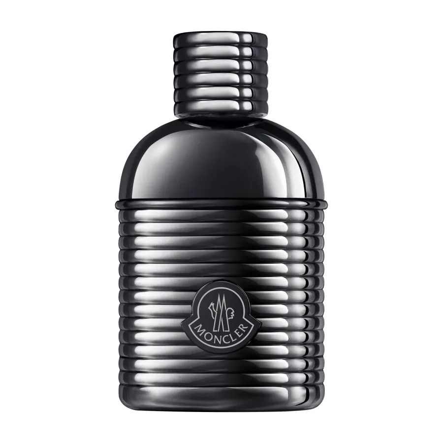 Flakon byl inspirován horami za úsvitu, kde tento nový příběh vůně využívá zářivou metaliku. Uvnitř v novém nadčasovém pistolovém kovu Moncler Sunrise pour Homme ztělesňuje esenci mužnosti, sebevědomí. Ikonický a výrazný prošívaný flakon, připomínající prošívané zimní bundy, září svým intenzivním černým obalem se symbolem domu Moncler.