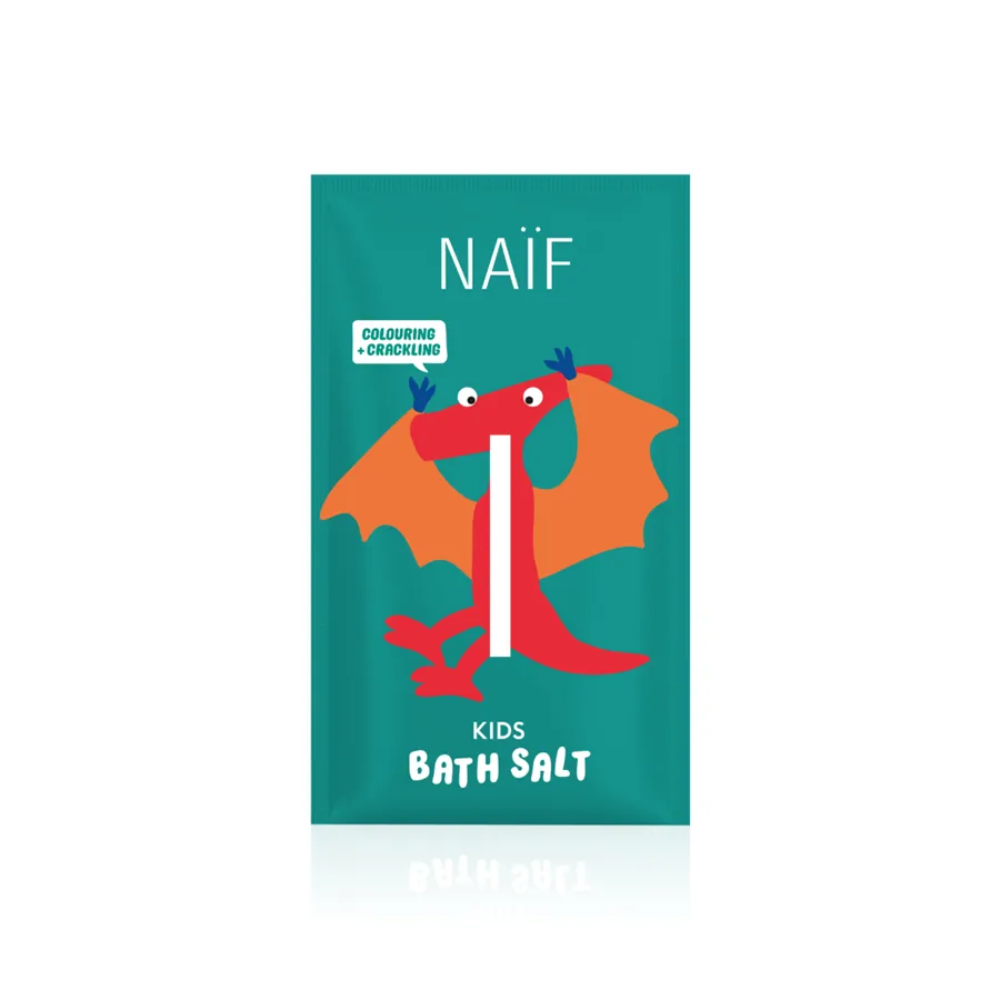 NAÏF Praskající barevná sůl do koupele je vyrobena z přírodních ingrediencí a je šetrná k citlivé dětské pokožce. Základem složení je mořská sůl, dále obsahuje výtažky z kokosu, aloe vera a přírodní cukry. Přírodním barvivem, které je bezpečné i pro citlivou dětskou pokožku, je hydrolyzovaný extrakt z gardénie. Praskání, šumění a bublání je dosaženo díky obsahu oxidu uhličitého. Po koupeli bude pokožka dětí hydratovaná, jemná a hebká.