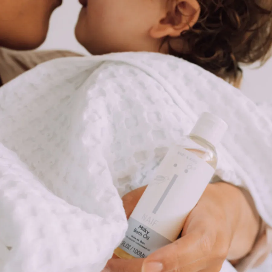 Je čas na koupel! Voda ale může citlivou pokožku dětí a miminek během koupání vysušovat. Proto NAÏF vyvinul Mléčný koupelový olej s pečujícími složkami a přírodními oleji. Vodu ve vaničce promění v mléko a změkčí ji. Pokožku během koupele chrání před vysušováním, jemně čistí a hydratuje. Nezanechává mastný film na pokožce ani ve vaničce – bez klouzavého efektu. Vhodný k použití od narození.