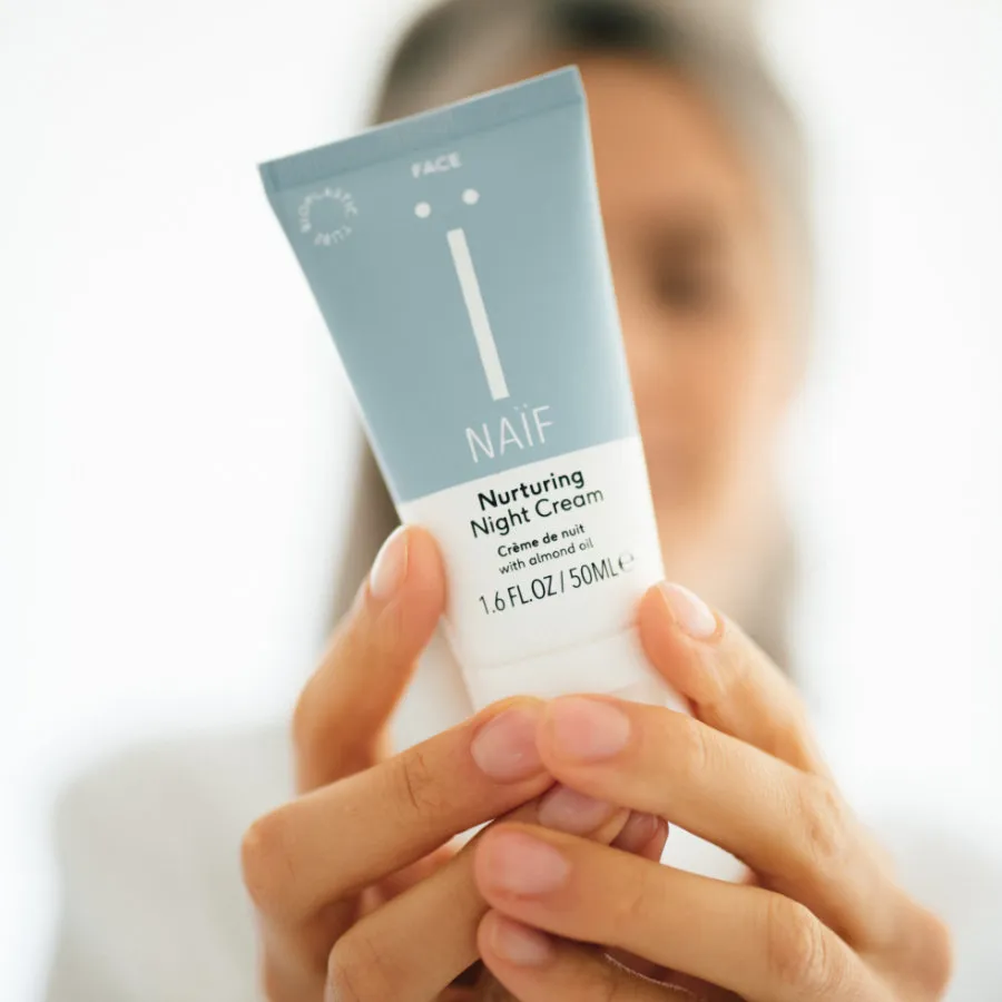 Noční pečující pleťový krém využívá přírodních ingrediencí a napravuje pleť během spánku. Jeho výživná síla spočívá v kombinaci oleje ze sladkých mandlí, bambuckého másla a extraktu z makadamiových ořechů, který udržuje pleť hydratovanou. Krém má bohatou konzistenci a rychle se vstřebává. Je vhodný pro všechny typy pleti a stejně jako ostatní produkty Naif je 100% veganský.