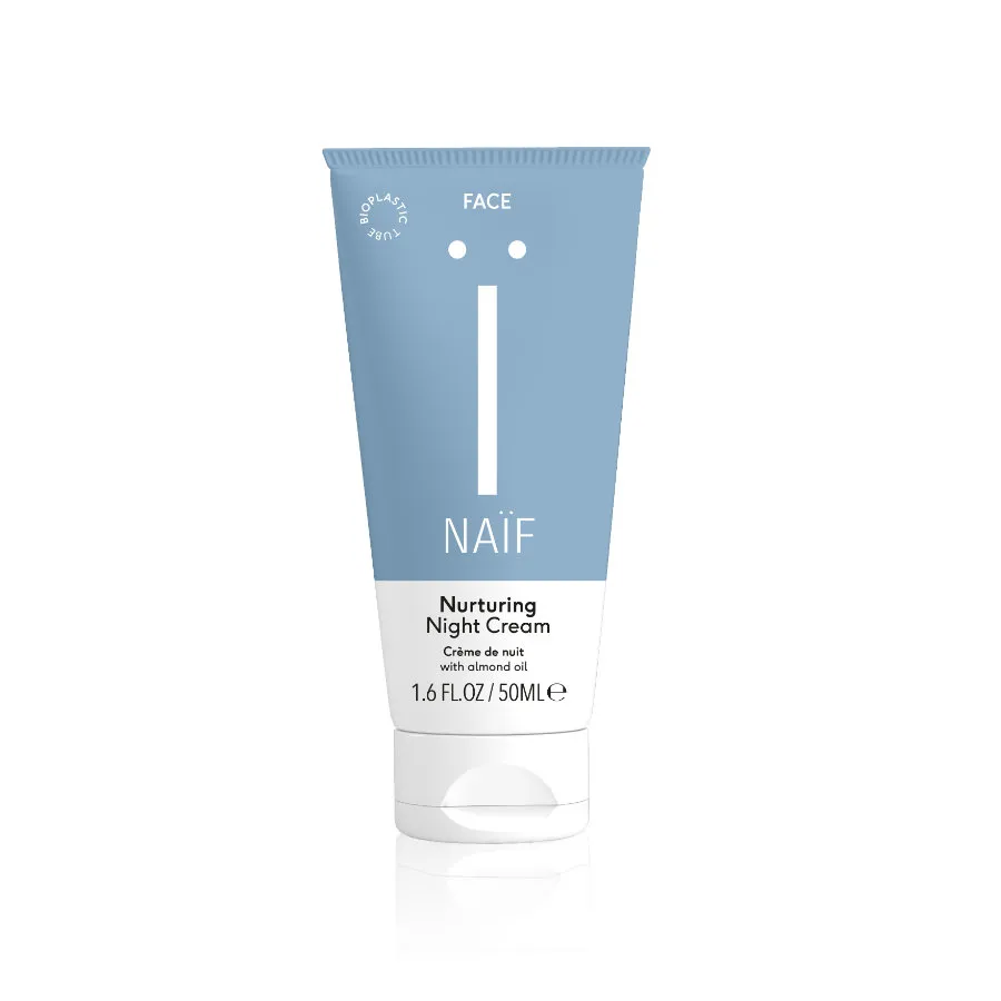 Noční pečující pleťový krém využívá přírodních ingrediencí a napravuje pleť během spánku. Jeho výživná síla spočívá v kombinaci oleje ze sladkých mandlí, bambuckého másla a extraktu z makadamiových ořechů, který udržuje pleť hydratovanou. Krém má bohatou konzistenci a rychle se vstřebává. Je vhodný pro všechny typy pleti a stejně jako ostatní produkty Naif je 100% veganský.