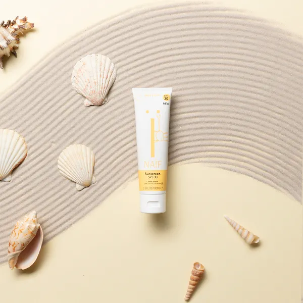 Přírodní Ochranný krém na opalování SPF 30 (Sunscreen SPF 30) pro děti a miminka má 100% přírodní minerální složení. Základem tohoto složení je čistý oxid zinečnatý, který neobsahuje nano částice (Zinc Oxide non nano). Stejně jako ostatní produkty Naïf neobsahuje žádné nesmysly jako jsou minerální oleje, mikroplasty, silikony nebo SLS/SLES.