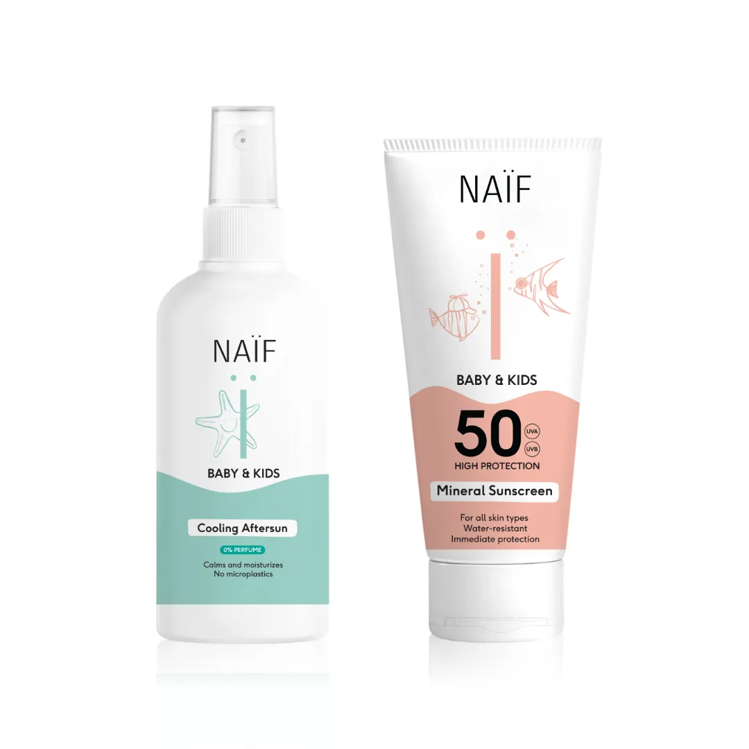 NAÏF Sprej po opalování pro děti a miminka bez parfemace 175ml přináší okamžité zklidnění, hydrataci a ochlazení po pobytu na slunci. Obsahuje aloe vera a rostlinný glycerin, lehce se vstřebává a nezanechává lepivý pocit.