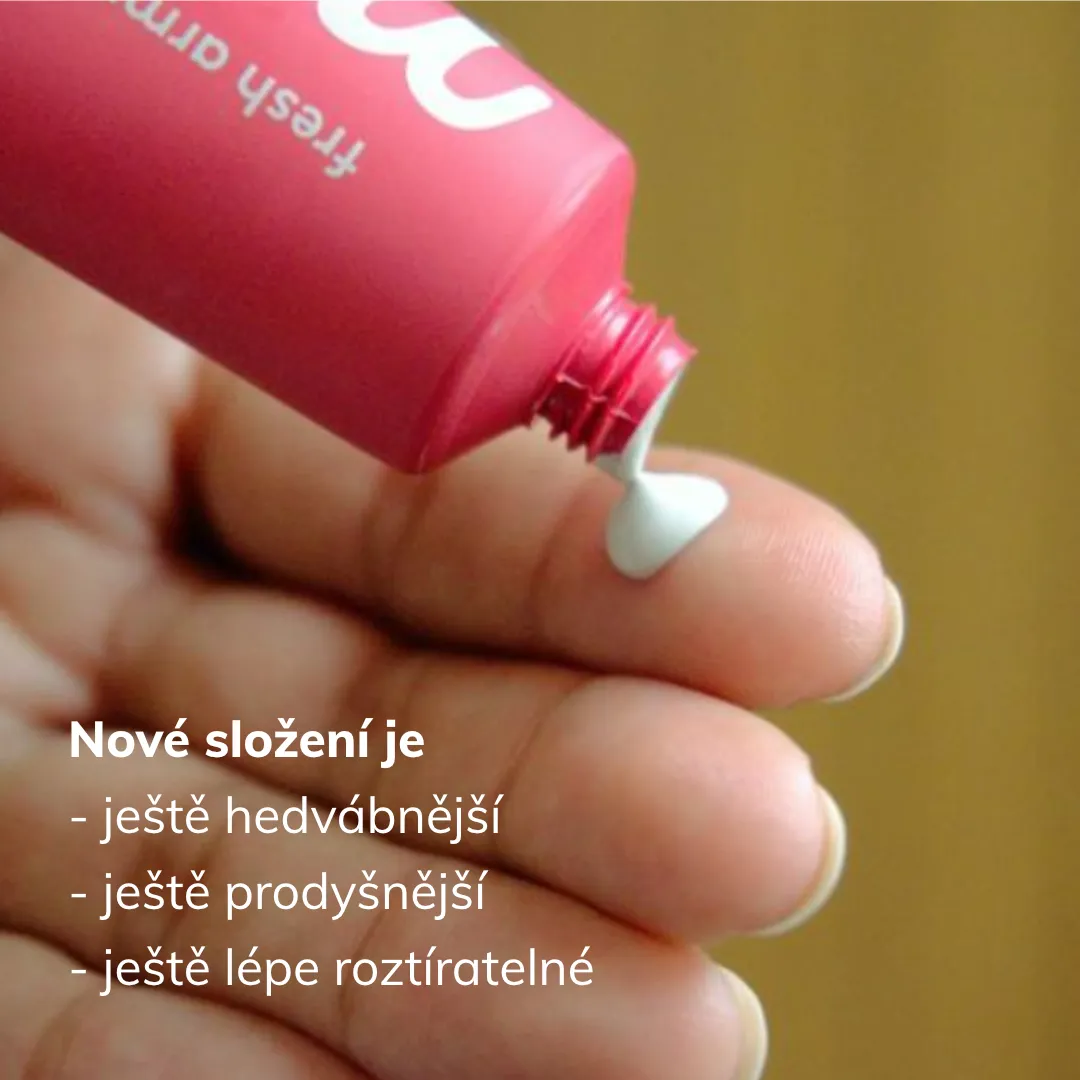 Nuud je stále neuvěřitelně účinný, ale mnohem méně krémový a mastný. Protože se nerozpouští ve vodě, můžete se sprchovat, cvičit nebo dělat, co chcete, aniž by se snížila účinnost. Neucpává potní žlázy a nezabraňuje tak detoxikaci těla. Nezanechává stopy na kůži ani na oblečení.
