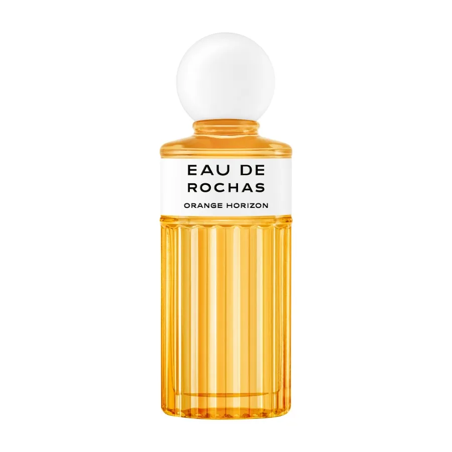 Elegantní a moderní flakon, tónovaný do popové a jiskřivé oranžové barvy, překrucuje ikonické kódy Eau de Rochas do barevné, rozhodně moderní deklamace.