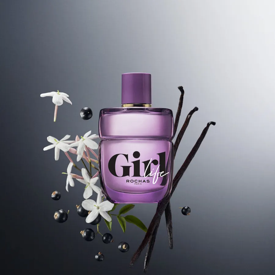 Rochas Girl Life je jako vlna pozitivní energie. Svými ovocnými, květinovými a ambrovými tóny inspiruje k radosti. Otvírá se živou a jiskřivou vůní pupenů černého rybízu. V srdci vůně se mísí zářivá kytice jasmínů, tuberózy a růže, ze které dostanete téměř závrať. V základu si vanilka obléká dřevitou a krémově pižmovou podobu, a vůně se tak rozvíjí do intenzivní a zahalující stopy, kterou ucítíte celý dlouhý den.