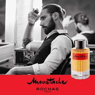 Rochas Moustache pro muže je novou verzí první pánské vůně Moustache z roku 1949. Je zaměřena na smysly. Modernizuje obraz vůně a představuje více trendy, výraznější a působivější image dnešního muže. Vůně Moustache je orientální a dřevitá. Otevírá se svěží mandarinkou a zrnky růžového pepře, které dokonale kontrastují s ingrediencemi obsaženými ve středních nótách – smyslnou růží a cedrovým dřevem. Nikdy jí nebudete mít dost, i když nenosíte kníry. Vůni vytvořila parfémářka Nathalie Gracia-Cetto.
