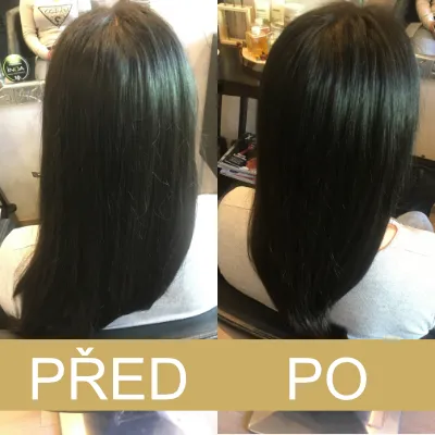 Kadeřnice péči nanese po použití šamponové lázně do délek vlasů a okamžitě spláchne.