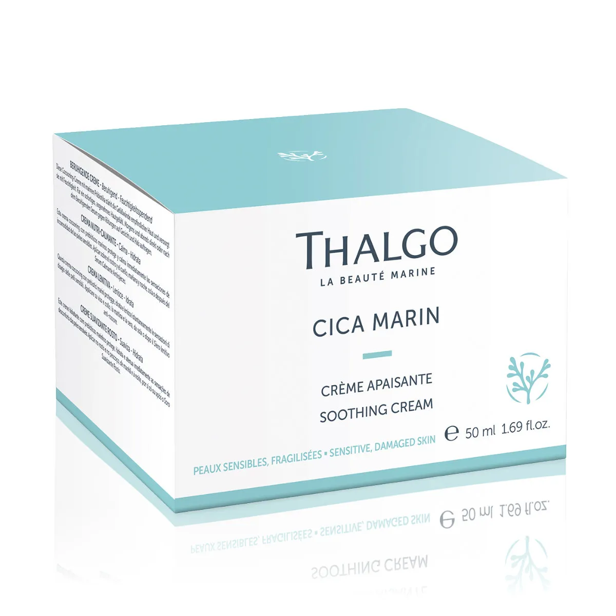 Thalgo Cica Marin je SOS kosmetika s mořskými prebiotiky k obnově, zklidnění a zpevnění citlivé nebo namáhané pleti. Mořské prebiotikum z makro řasy napravuje kožní bariéru, zvyšuje tloušťku dermis, okamžitě zklidňuje citlivou pleť zvýšením tolerančního prahu a zpevňuje odolnost pleti vyvážením kožní mikrobioty. Pleť je napravená, okamžitě a trvale zklidněná a celkově odolnější vůči vnějším stresorům.
