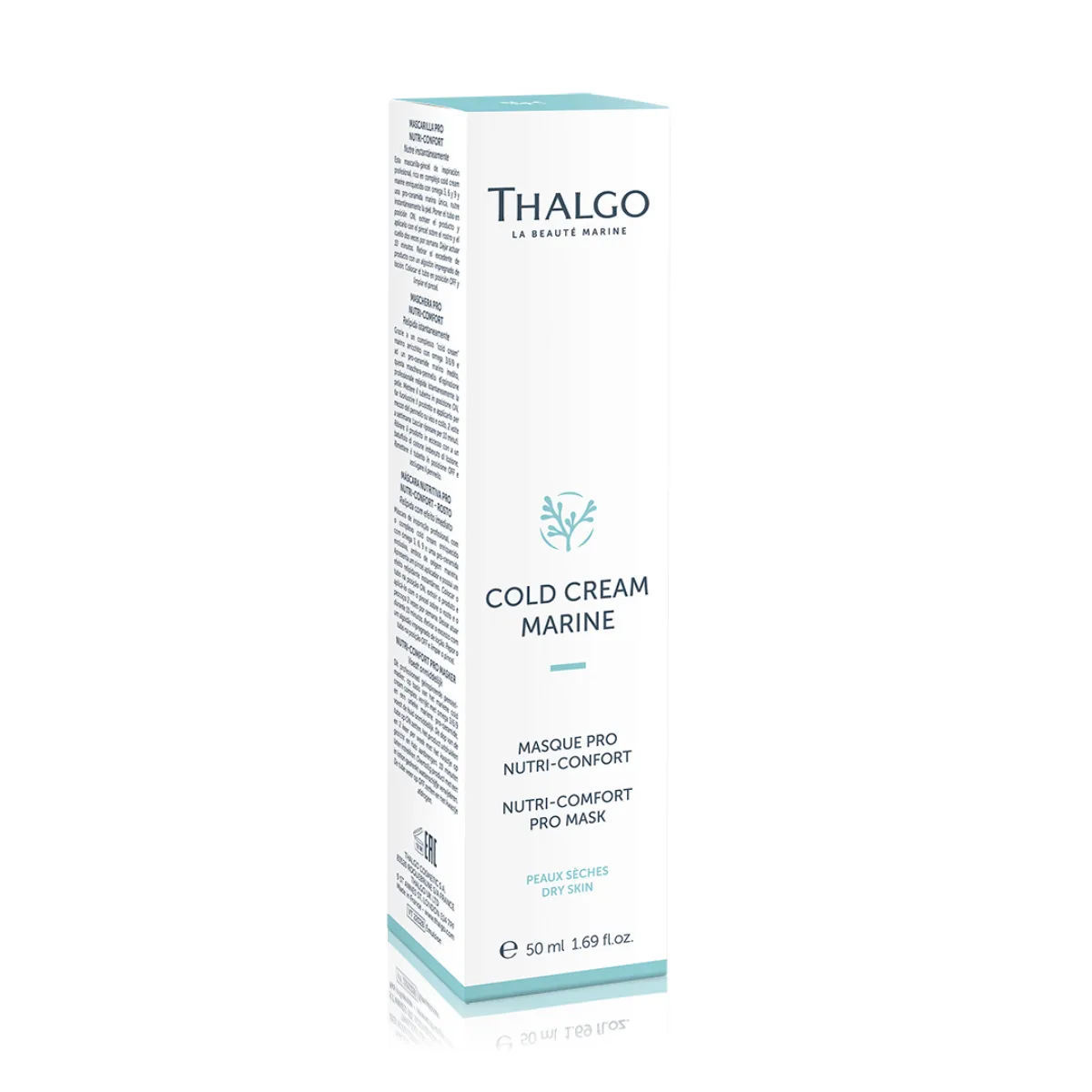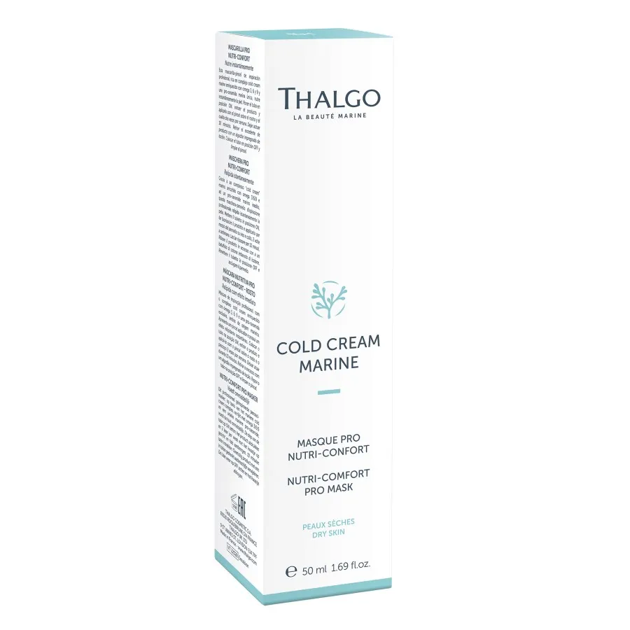 Nutri-Comfort výživná maska Thalgo Cold Cream Marine s obsahem posíleného vyživujícího komplexu a mořského pro-ceramidu doplňuje lipidy, přináší suché pleti intenzivní výživu a komfort. Obnovuje kožní bariéru stimulací syntézy ceramidů. Pleť je hladší a známky stárnutí jsou redukované. Maska je bohatá na jojobový olej s expresním působením. Stimuluje syntézu lipidů v epidermis pro jejich okamžité doplnění do pleti. Maska s přepychovou zahalující texturou bohatou na olej se snadno nanáší díky aplikačnímu štětci.