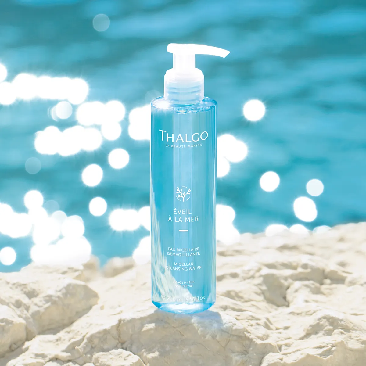 Micelární odličovací voda Thalgo Éveil a la Mer rychle a účinně čistí a odstraňuje make-up z pleti i očí. Pleť osvěžuje a obnovuje její energii. Je vhodná pro všechny typy pleti včetně citlivé. Filtrát patentovaných Mikronizovaných mořských řas dodává pleti minerály a mikroživiny, které jsou nezbytné pro její správné fungování. Pleť revitalizuje a posiluje. Pro expresní odlíčení obsahuje micelární technologii. Rostlinný glycerin pleť hydratuje a změkčuje. Micelární voda má krystalickou texturu s jemnou mořskou vůní. Obsahuje 98 % složek přírodního původu a je v recyklovatelném obalu.