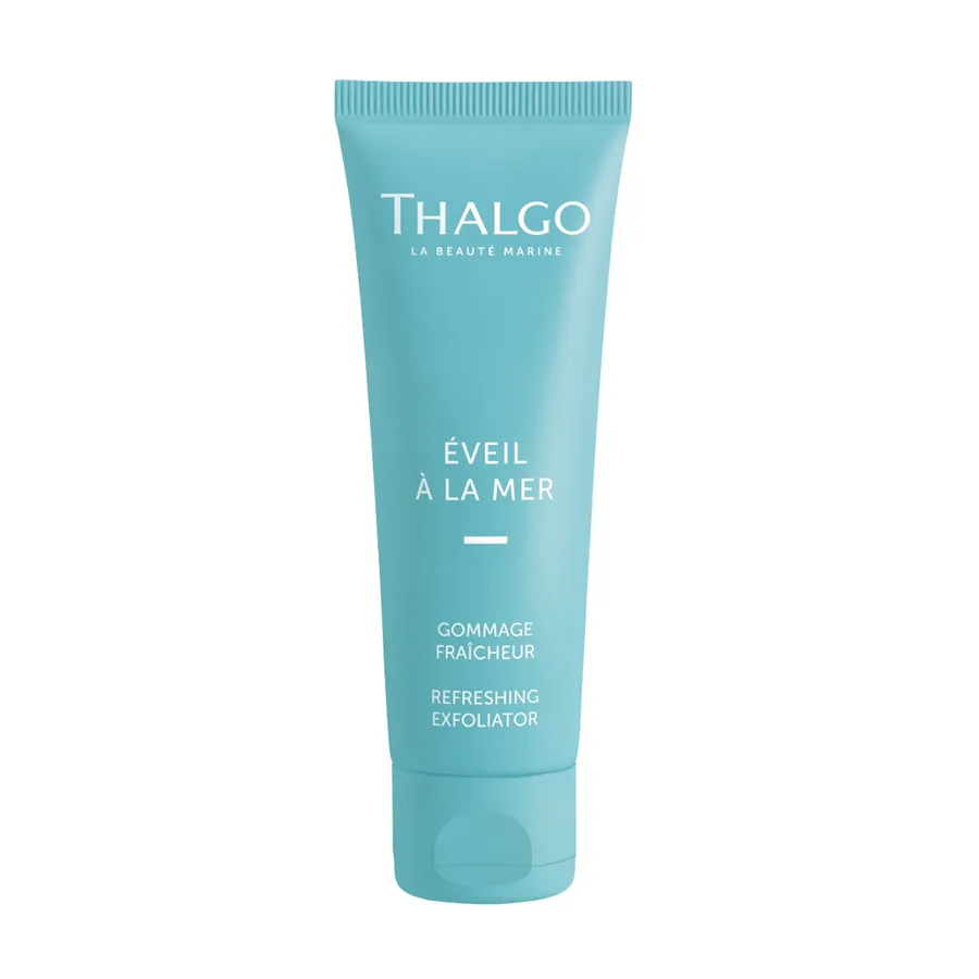 Osvěžující pleťový peeling (Refreshing Exfoliator) Thalgo pro normální až smíšenou a unavenou mdlou pleť poskytuje pleti trojitý účinek - hydrataci, okamžitý zklidňující efekt a posílení buňečné struktury. Díky svému unikátnímu složení je 14 krát bohatší na křemík, než mořská voda a obsahuje 8 krát více zinku.