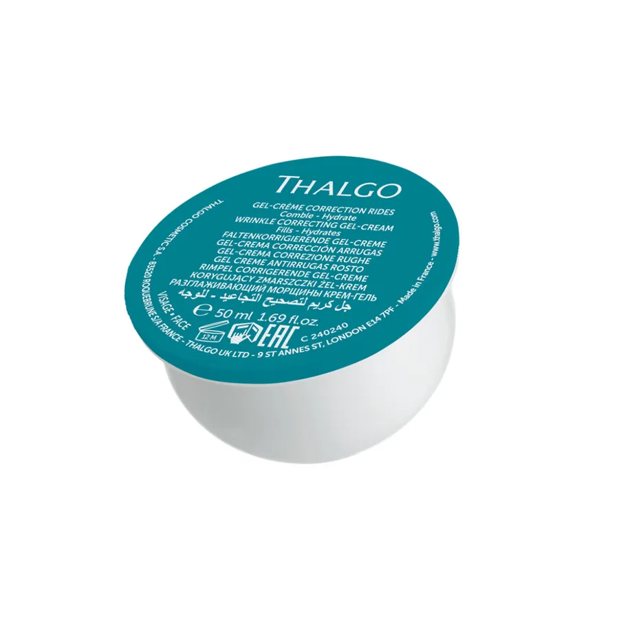 Gelový krém pro nápravu vrásek Thalgo Hyalu-Procollagene má trojitou účinnost proti vráskám. Kombinace tří kyselin hyaluronových a mořského pro-kolagenu pleť okamžitě vypíná, viditelně vyhlazuje vrásky a postupně vyplňuje i hluboké vrásky zevnitř. Gelový krém je obohacený o koktejl rostlinných aktivních látek (algináty a aloe vera), které doplňují do pleti vodu a intenzivně hydratují. Jeho lehká fluidní textura se snadno vstřebává a je ideální pro normální až smíšenou pleť.