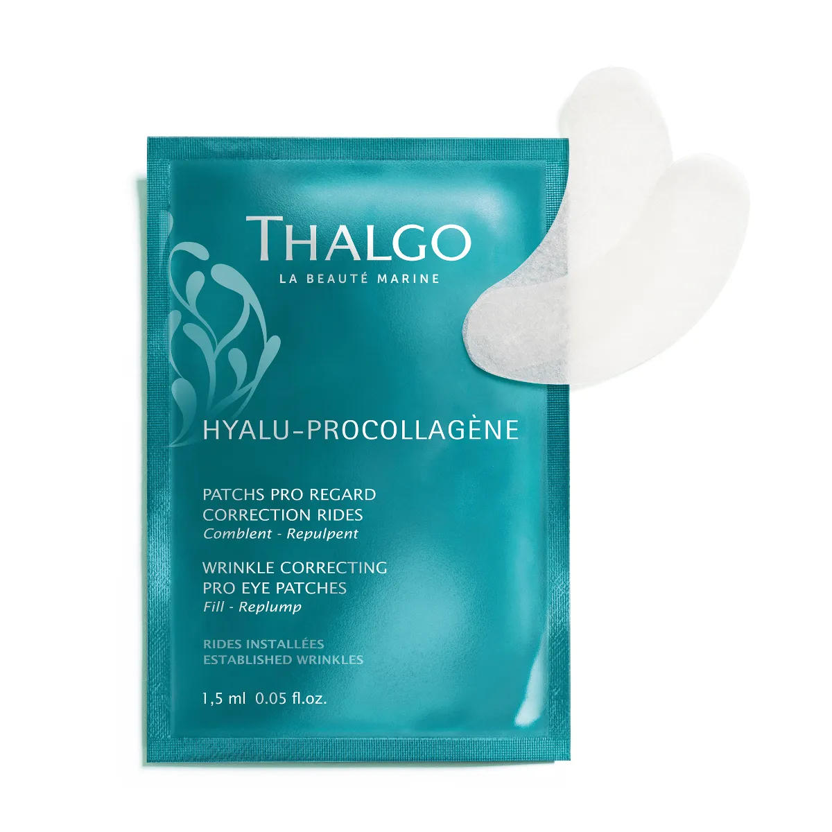 Oční maska pro nápravu vrásek Thalgo Hyalu-Procollagene má trojitou účinnost proti vráskám. Kombinace tří kyselin hyaluronových a mořského pro-kolagenu pleť okamžitě vypíná, viditelně vyhlazuje vrásky a postupně vyplňuje i hluboké vrásky zevnitř. Složení obohacené o zesítěnou kyselinu hyaluronovou okamžitě vypíná vrásky na povrchu pleti s efektem trvajícím po celý den. Polštářky jsou tvarem dokonale uzpůsobené k přilnutí k očnímu okolí. Bez parfemace.